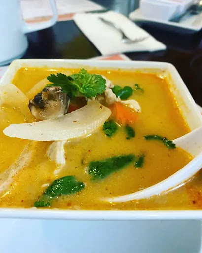 Read moreCasual restaurant attached to the Colonial Inn. We were taken aback by the plain exterior and empty parking lot at 5:30 on a Saturday. The haphazard interior didn’t improve our first impression. The chairs are all covered with very wrinkled leather-like chair covers. Shorts and these things do not mesh. Nothing against chair covers but they should at least fit. Our waitress was an elderly woman with a not-so-good grasp of the English language. We had a difficult time getting answers to our questions. We ordered various beverages including one beer. For some reason, she brought two beers. We tried, to no avail, to explain that we only ordered one. And we did get charged for the extra “no we didn’t order it” beer. This is the most expensive Thai restaurant we’ve ever visited. $130 for four meals and one, no two, beers. We just ordered entrees, no appetizers or desserts. On the bright side, the food was, overall, very good. The serving sizes are more than adequate. We had the Panang chicken (which is not on the menu but they’ll make it), the Red Curry shrimp with extra shrimp (which they charge a pretty penny for), the Mango Salmon and the Steak Teriyaki (on the menu offers brown rice which they don’t have). No complaints on either of the curries they were very tasty. The salmon tasted fine but it was a very thin piece of fish. My spouse asked for the salmon to be cooked medium rare but there’s no way they could cook it other than well done. My sister ordered the steak which came in very large, thick strips. It was disappointing. It was mostly gristle and fat with very little meaty flavor. Waste of money on this one. This is a hard one to rate for sure. It’s over priced but the food (with a couple exceptions) is pretty decent. I just...