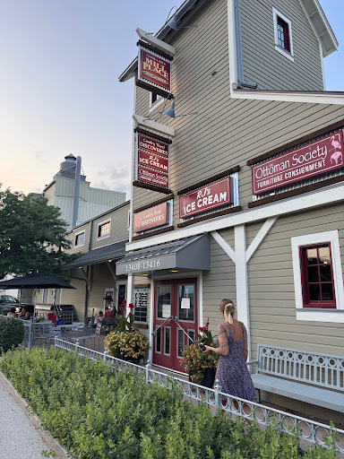 RJ's is not on the street, but tucked away in the Mill Place building, which holds other businesses. It has a few tables on the outside patio and more seating inside. Inside, you'll first notice a brightly colored area displaying different candies. The ice cream counter is toward the rear of the store. They serve Cedar Crest ice cream. Not a large collection, but we found some of our favorites.