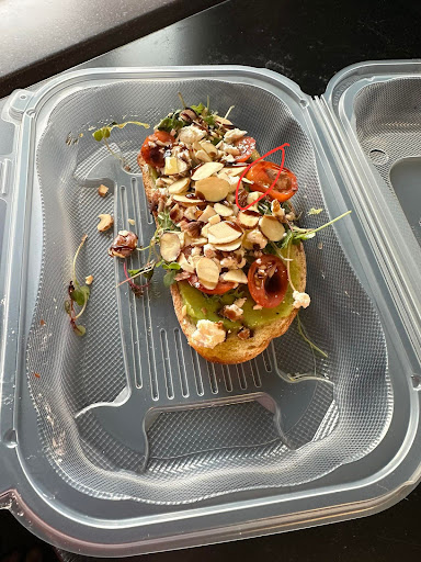 Ā Ā Ā Read moreThe prices get higher and higher, while the portion size gets smaller and smaller. I paid $10 for this item, which in the past had come on a nice large slice of bread nearly twice the size of this 4" x 2" piece I got today. To make it worse, once I got home and opened it I found a piece of black hair sticky out of the food. Disgusting. Previously I had to send back an item when I watched them reach into the food containers of tomatoes and feta with their bare hands to make my item. You should be using utensils to scoop these items if you decide not to wear gloves. A beautiful coffee shop on the inside but I can't justify going back here again. Be wary of the food you eat from this...