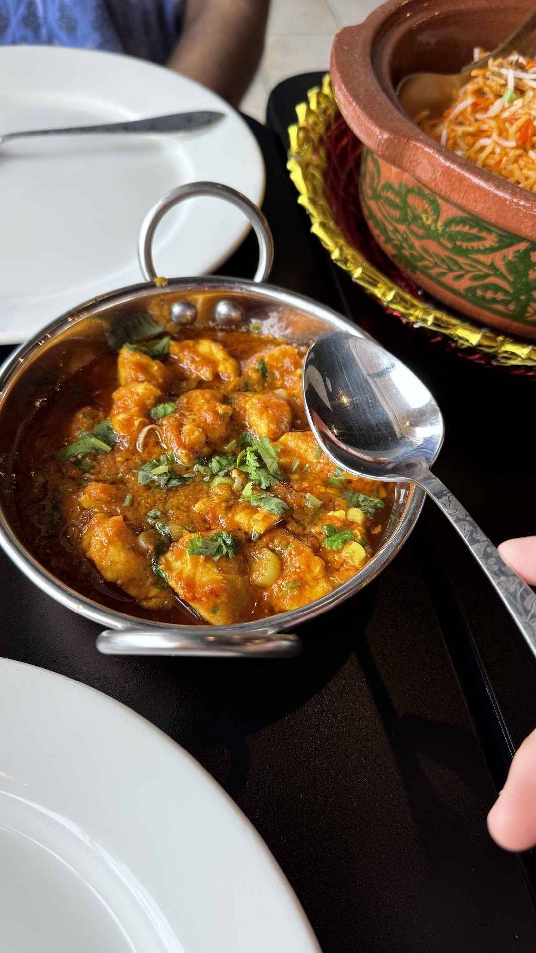 The chicken handi's quantity to price ratio is extremely high. You can see the tablespoon for comparison to the size of the kadhai, and the size of the biryani, it was very small for the price we paid for it (especially considering no rice/bread comes with it!)