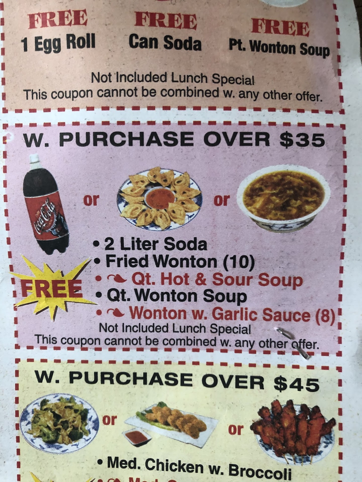 Now, where on your menu does it say I had to give you the coupon? I took a picture and posted your current menu, and nowhere does it state that I had to present the voucher, but as I told you on the phone you can take it when you came to my house with the soda owed to me... I asked the rude lady if I got the free soda she said yes. I didn't notice I didn't get the free soda until after I looked at my receipt and saw I was charged $3.00 for the soda. THAT SHOULD BE COMPLIMENTARY with my overpriced order. When I called back, instead of asking for a refund, I said you could bring another soda with the two orders of French Fries you tried to overcharge me for.. then I said, "Well, you must have an old menu".. So do me a favor .. post for everyone here the "NEW" menu with the prices you tried to charge me for my meal and the fries I didn't get. Also, show me where it says that I have to give you a coupon.. all it said was if my purchase exceeded 35.00, the...