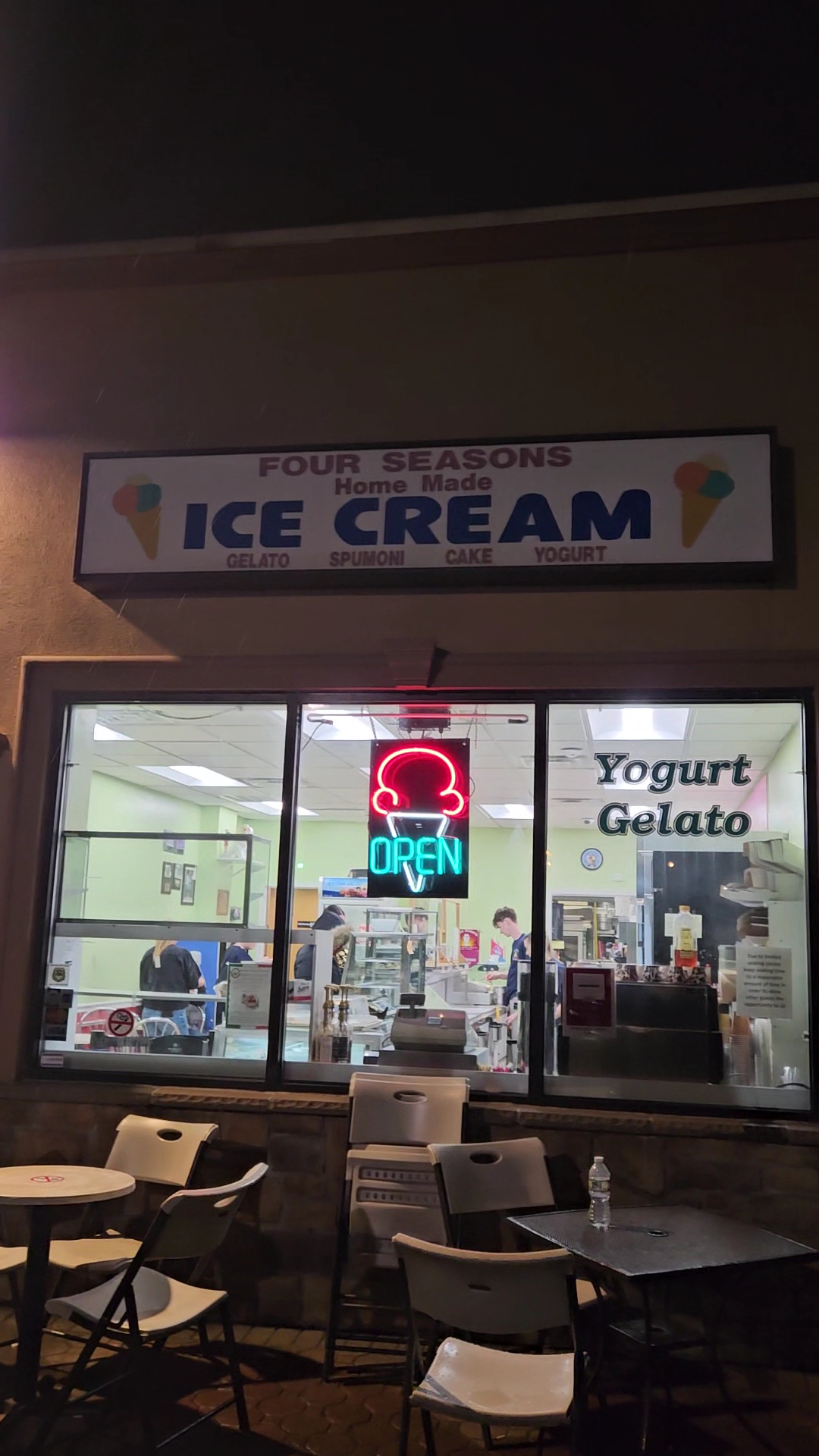 Located on Market Street in Elmwood Park, my partner and I came to this family-operated establishment celebrating 25 years. Upon entering the cozy Four Seasons as first-timers, we were in the mood for some homemade gelato. There were a few classics one will find, such as chocolate, hazelnut, coffee, and stracciatella (vanilla with crunchy chocolate pieces), as well as pistachio, all written in Italian. They also feature hard ice cream, cakes, pastries, and coffee.