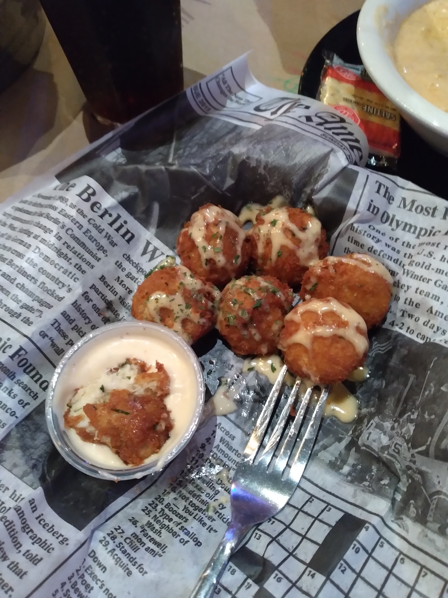 Definitely not a place Iād order salad again. We got crabmeat salad for the table. The leaves looked like they came out of a bag, and we had to search for the promised crabmeat. The dressing came in a bag on the side. Felt like a waste of $9.