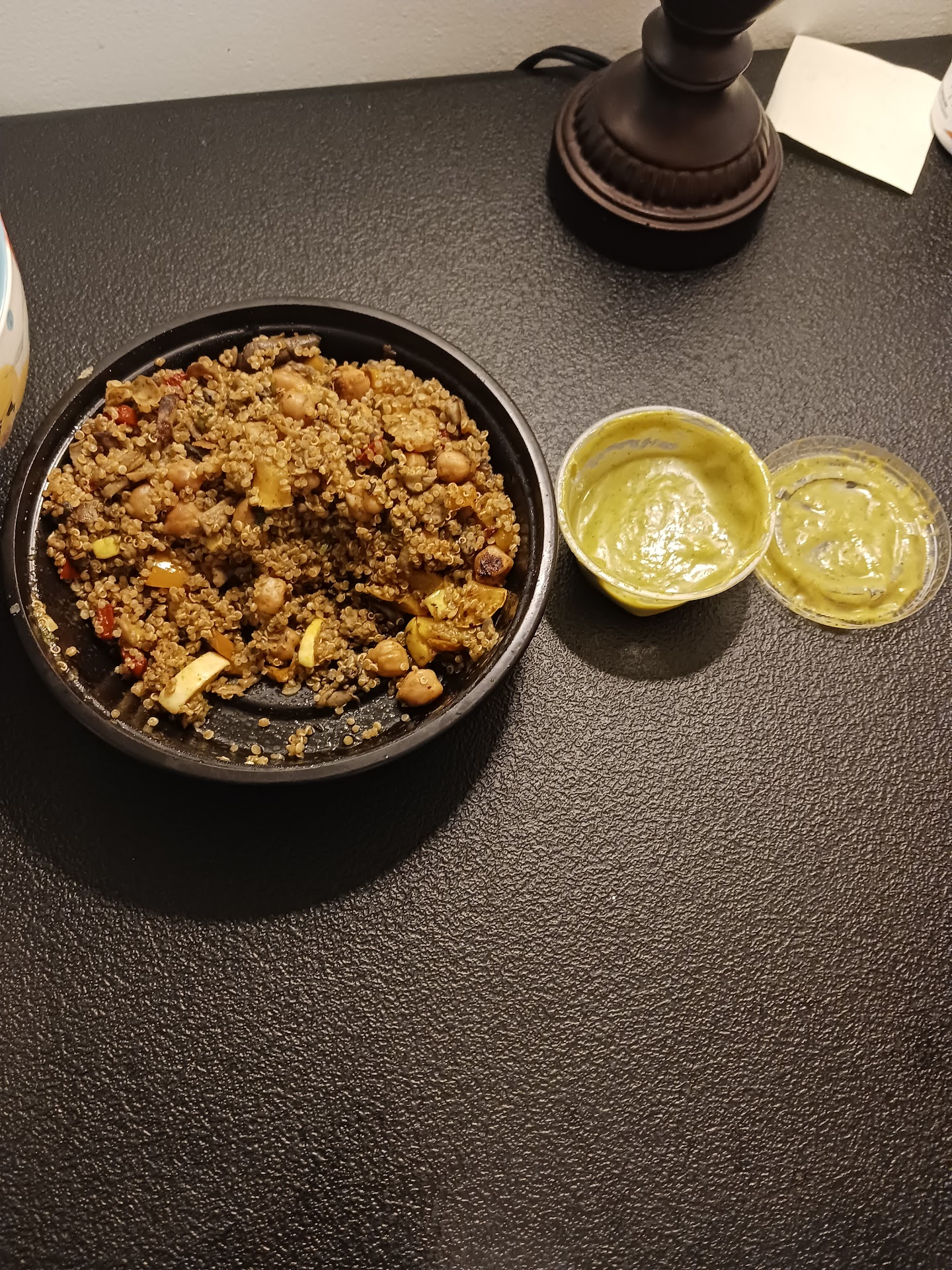 Read moreThe atmosphere was calm and food smelled amazing not to mention taste delicious. My cousin suggested I get the potatoes and raspberry tea as an add on to my dish. She made a great suggestion. The veggie burger was home made and incredibly tasty . Also, I order The quinoa stirfry that is mouthwatering. I cannot wait to dig in tomorrow. I only tasted a little because it is actually my Christmas dinner being that I am working this year. I will be back. Even if you’re not vegan I would recommend Aspired Vegan you will not be...
