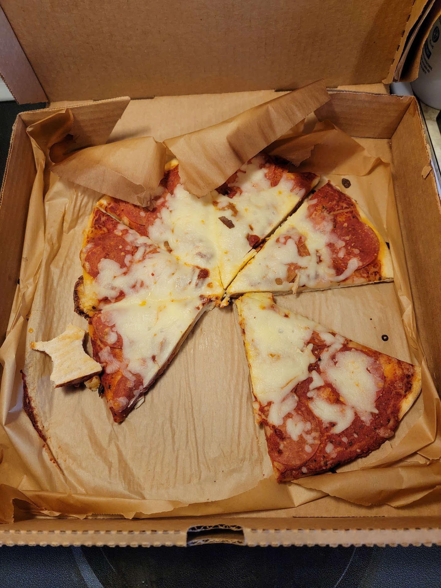 Read moreWe ordered 3 large peperoni pizzas, one cheese, and 5 orders of breadsticks for some friends we had coming over for the UFC fight last night. They had our food made in a timely manner, and it was really good. She said she is still tweaking her toppings and dough, so we will have to try it again soon. Staff was kind and friendly, exactly what you'd expect in a small town pizza joint. I forgot to take before pictures, but this is all we had left...