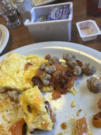 We visited the Dennyâs, in Eloy, AZ #8579, this morning (2/24/24) for breakfast and were very disappointed. When the server brought the food to the table, the container that holds the jelly was not only sitting on my husbandâs plate, but also directly touching his food (the plate w/the omelet). This is very unsanitary- Iâm certain the container isnât cleaned after each patron (the server knew it was wrong, she apologized as she set his plate down) The accuracy of the food ordered vs. what was received was way off. My Husband ordered the âUltimate Omeletâ- the omelet did not have cheese or any of the vegetables with the exception of tomatoâs, which the omelet was overloaded with. He also ordered the hash-browns extra crispy- they were barely cooked. The toast was barely toasted, flimsy-floppy, over buttered. I ordered the Moonâs Over My Hammy Omelet, adding jalapeños and avocado- my omelet did not have any Swiss cheese, overloaded with jalapeños. The avocado, served on a separate bowl, looked to be not fresh and had a lot of peel on/in the bowl. Similar issues with my hash-browns and toast. There wasnât an opportunity to have any of the issues addressed- the server didnât return to the table until we were almost done eating and shortly after she dropped off the bill. Definitely donât believe that the quality of food or service was worth the $48 + tip for breakfast, and we wonât...