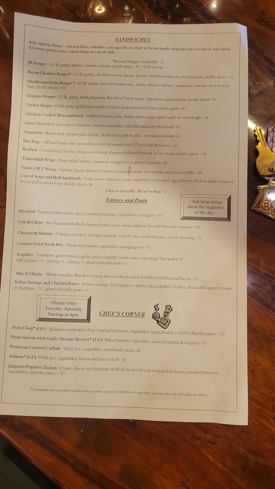 Read moreCame here with a few family members. The food was good, seems like a fancy place but really isn't too fancy. It gives off a comforting feel when your enjoying your meal inside. The service was great, only issue was my great grandmother's meal (the fish and chips) was not so great. It tasted good just the batter on the inside under the crispy skin was not cooked all the way through. Great price, not really that expensive besides the dinners (only like 4 above $15, $20 was the max price) Since it's more like a restaurant in this area it's great because there's really only fast food. So if you want a nice place to come and sit down and enjoy a meal...