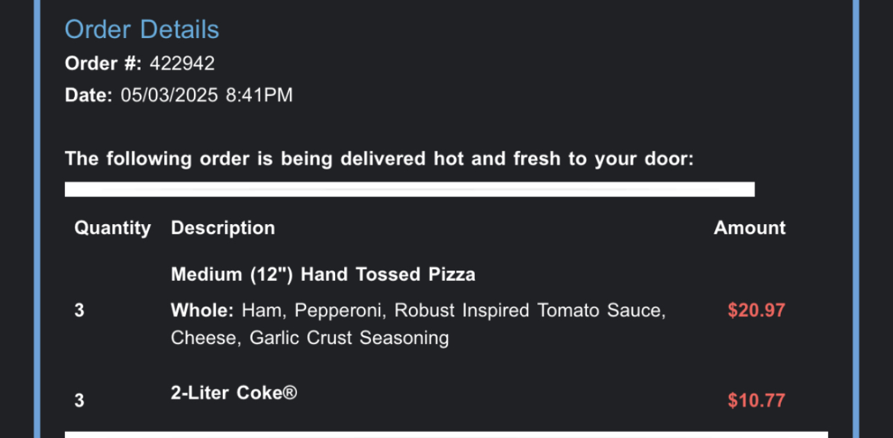 Read moreThis Domino's, has messed up my order 3 times. Tonight was the worst! Once I went to pick up my order bc the phone application indicated it was ready....one of the "drivers" appearantly took one of my pizza's. 1st they said, 6 minutes but it was 12. I asked for a credit of some sort....TRUST ME, I do not need an extra $5.00 but I felt as an unhappy customer, surely they would offer a small credit. They didn't want too. I will admit, I was very upset, and the person a just kept on saying...."it's just 12 minutes". As a business person a myself, customer service has...