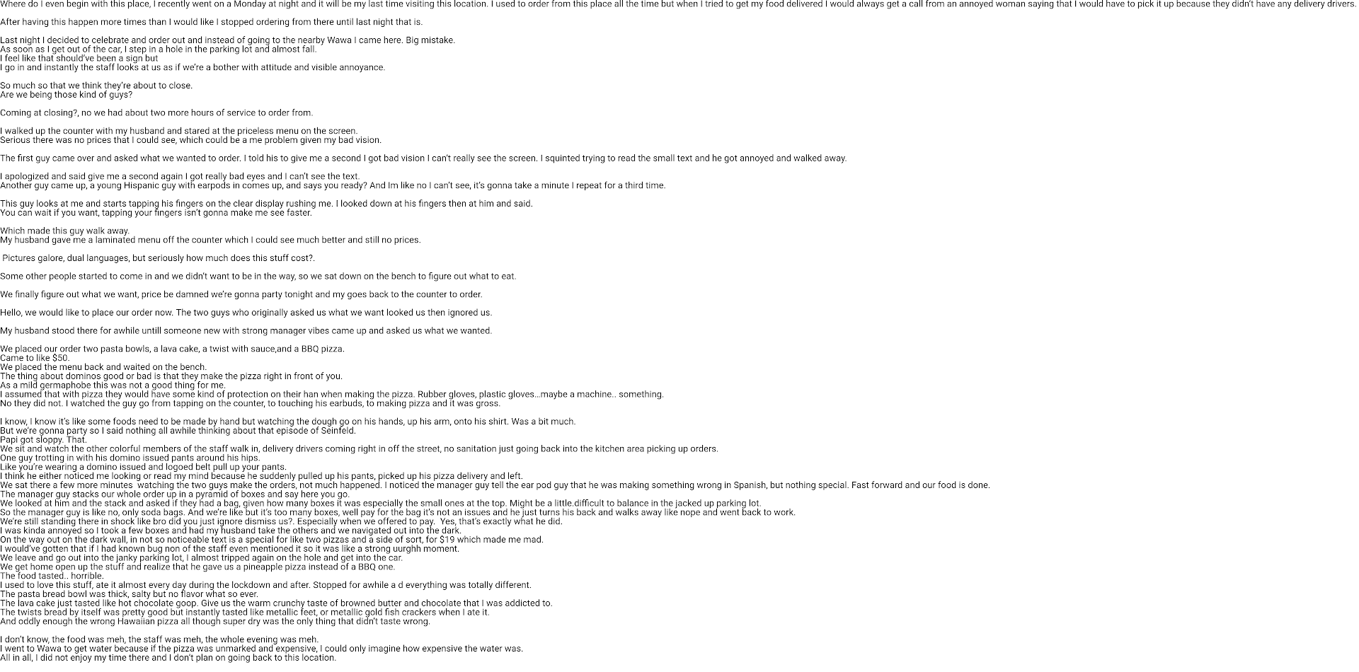 Read morePLEASE PLEASE don’t Order any pizza from this place!! We made our order online Today at 4:22 pm I get a call from the owner 45 minutes later stating that I won’t receive my order until one hour and 45 minutes later. I said okay since it’s 4:22pm. At 5:48pm I get an alert that the driver was on his way.At 6:13 pm. I’m outside looking at this guy pull into the apartments across the street from me and walk around from bldg to bldg holding our food. This guy walked the entire neighborhood NEVER calling us!! I called my husband who was upstairs waiting to hear from me. I informed him that the driver was in the neighborhood walking around. My husband called the store and spoke with the RUDE OWNER demanding our money back or we would do a “CHARGEBACK” with the credit card company!! He NEVER apologized and was testy with US!!! We left the food with the driver and finally at 7:06pm we get an alert that the order was Cancelled!!!! From 4:22 to 7:06!!!! DO NOT WASTE YOUR TIME HORRIBLE HORRIBLE HORRIBLE and this was our FIRST TIME ORDERING WITH...