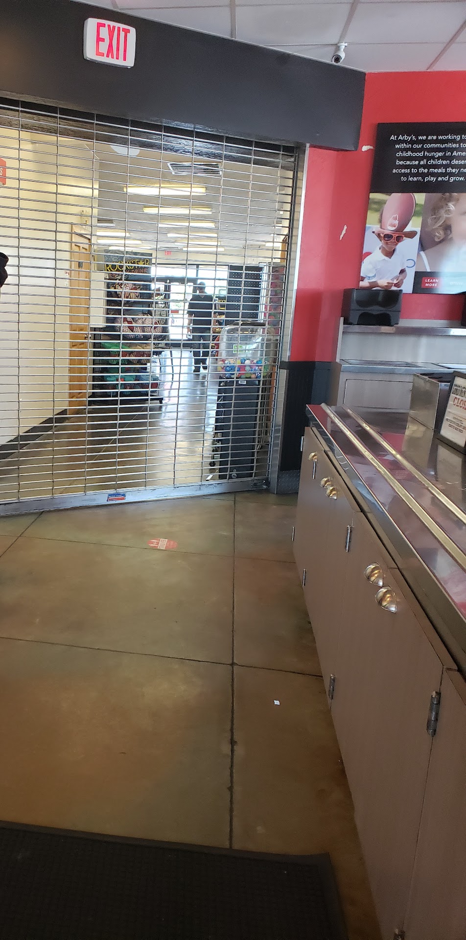 We visited this Arby's over the weekend as we were passing through town. Probably the worst dining experience I've ever had. For starters, the inside security gate between Arby's and the attached convenience store was closed, making it so we had to walk around the outside of the building to access a small door by the drive thru. The lobby was packed with people waiting for food, and they had stacked chairs and other furniture up to prevent access to their dining area, saying it was closed. I get COVID and stuff, but it's mid 2022 and this is the first closed dining area I've seen in a long time. Based on the environment and all the disgusted looks on patron's faces who were waiting for food, we left. Never coming back. This place was never great, but this weekend was a horrible experience. Glad there are other options opening up nearby.