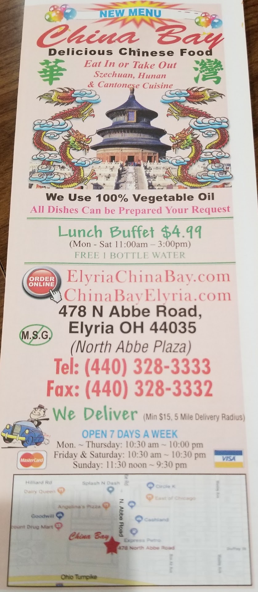 Read moreShout out to China Bay on N. Abbe! After moving back to the area after years out of state, some of our favorite Chinese restaurants just aren't that great anymore. So we ordered from China Bay and it was incredible! The pad thai was amazing! The roast pork lo-mein had so much flavor, and the fried rice was some of the best we'd ever had. My husband had the house fried rice and couldn't even finish it--it was so densely packed! The egg rolls are HUGE! The fried wontons and crab rangoons were light and not greasy at all. Delivery was super fast and the amount of food you get for the price is on point. 10/10 will order again! If you haven't tried them out yet, you really should! Thanks China Bay for saving this mom from...