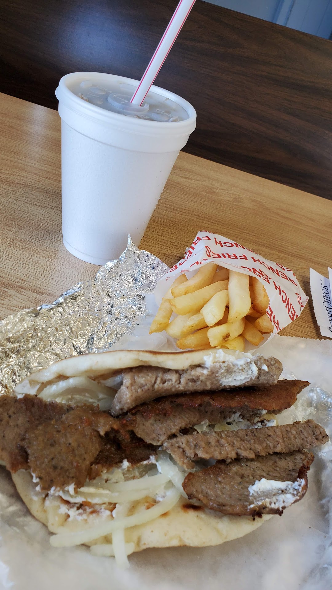 Hello foodies this is Steven the foodie guy I went here today to try first time a gyro a jumbo gyro well I was really disappointed it was not a jumble look like for a kid anyways the jumbo gyro was $6 and it was cut it wasn't shaved I will probably not be back for the gyros they do have a nice menu though maybe I'll try the chicken wings but anyways back to the gyro out of 10 or give the Peta a 6 and 1/2 out of 10 I could have been cooked better the sauce the sour cream was at 8 out of 10 little watery the gyro meat itself I would give that about a 6.5 oh that's the same amount of ounces it weighs remember this is a jumbo I wish there was more onion and tomato on there but anyways that's the review for this place maybe it's just because it's the first time during busy anyways I was really dissatisfied with the size of the jumbo gyros you want a good gyro you got to go to awesome gyros in North ridgeville by fuzzy's bar or let's try this new place called gyro guys on Pearl road have a nice day and watch out...