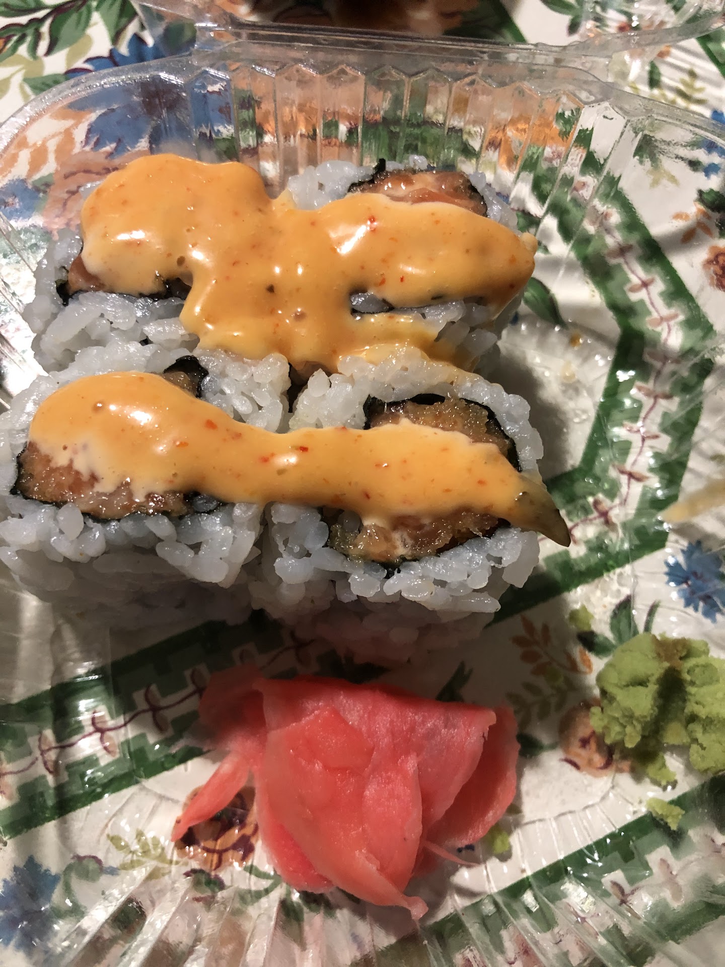 Hibachi is good, I usually get chicken and shrimp with noodles and rice. I live 25 mins-ish from the restaurant and Iām I will admit that I am too lazy to drive after working crazy long hours to go there, pick up my food and bring it back. So, I pay someone an astronomical amount of money thru UberEats to deliver me their food. I will be honest, I have only ordered twice but both times, I have 100% worried about the possibility of food poisoning from this restaurant. Reason being is that my food is packaged with everything together, meaning⦠by the time it gets to my house, my salad is warm, the dressing is warm, my yumyum sauce is warm and my sushi is warm (which all should be served cold). So what do I do? Stick it in the fridge til it cools down and eat it the next day and hope for the best... I have also tried the spicy crab roll (not good, tastes like imitation crab) and today their bangbang shrimp. The shrimp unfortunately didnāt come with any bangbang sauce, I took one bite of the shrimp and spit it out cause it was still frozen in the middle and threw the rest away. For the $50 (from the price of the food & delivery), Iām not so sure I will be...