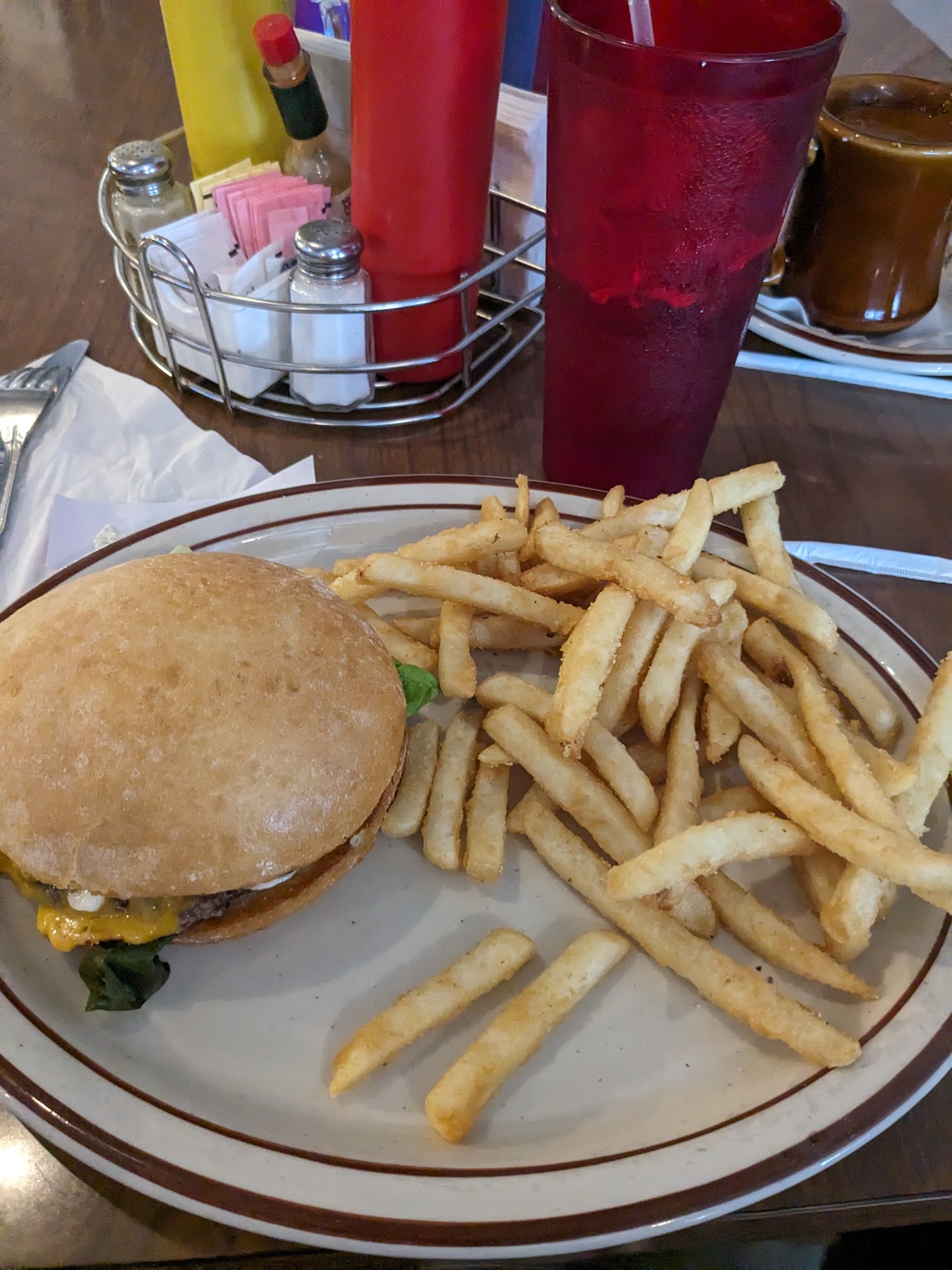 Yesterday my father and I visited Dovetail Inn for lunch around 12:30ish. This was his 2nd time visiting ( he couldn't recall what he had the 1st time) and this was my 1st time. Walking in for the first time it was tastefully decorated with decor and there seemed to be plenty of seating for larger crowds. There were roughly 10-15 other guests spread out at the tables and bar stools. There were specials listed on the board which my dad went for ( half sandwich & bean soup) while I chose the smash burger with fries. They also had cottage cheese as a side which is my go-to appetizer/side over salad, etc. It was a good sized portion. Not every restaurant has cottage cheese as an option so they already got a star just for having that. Service was fast and the waitress was very friendly. Now here is why Dovetail Inn got 5 stars. The smash burger was a smashing success! Served on lightly toasted ( buttered?) ciabatta bun with melted cheddar cheese with lettuce/mayo toppings, the burger was one of the best I have ever had and I get a burger literally everywhere I go. The burger itself had great flavor and was seared to perfection. I rarely give a burger 5 stars but this had me salivating for more. I rarely eat an entire meal in 1 sitting but this burger couldn't wait to be devoured. It was so good I woke up the next morning and was still thinking about that burger! The french fries were bubbly and very similar to other places I have visited. Very solid fry. I shared some with my dad who devoured his meal before I was done with mine. We learned the tomatoes are freshly picked from the garden of the owner. They have delicious deserts available but we were too stuffed to enjoy those this time around.( deserts are made in-house and from a local popular bakery) Emden might be out of the way for most people but it's well worth the drive! The only minor complaint came from my dad who said the tap water didn't taste right and he only could take a couple of sips. I on the other hand drank my entire glass of tap water. You go there for the food not the drinks. My suggestion is to get a soda, tea or bring your own bottled water instead, if you are a water critic like him haha. They have a vest menu for breakfast, lunch and dinner. I really want to try the fried chicken next time I visit because I...
