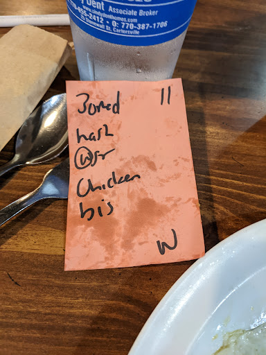 Read moreAfternoon, so last night we had a party of 5. Hubby, daughter, granddaughter, mom and myself. Parking lot was full around 7pm. To our suprise no wait, we walked right in an was set. We ordered drinks n then about 5 min after we ordered food. Daughter ordered the fried chicken salad no peppers, no tomatoâs she had to remove the chicken. It tasted like it was cooked in old grease. Granddaughter had a plain cheeseburger with fries an mac n cheese. She ate it all except fries they were greasy and limp. Mom ordered fried chicken livers no let me say at this time that the server asked her did she want 1 meat with one side or 2 sides. She said 2. She ordered fries and fried okra. This is the only place we come for livers and they were small and hard but she ate them anyway. My husband ordered the all u can eat catfish with turnips n fried okra, he said it tasted great the only thing he didnât like was the cocktail sauce was ice cold and chunky. He did order a second round of fish an it came out in like 2 minutes. I ordered a meat with 3 sides. Cream corn, slaw and mashed potatoâs with gravy. Very disappointed in the steak and potatoâs. The steak was so tough n looked like a piece of roast thatâs how rounded and thick it was. The taste was nasty n the potatoâs tasted like they came out of a box. However I loved the corn an slaw. Now remember when I said mom ordered meat with 2 sides n she ordered fries n granddaughter ordered fries. When I got the bill I was charged for 2 fries at $8 so i asked the server about it. She said fries are not considered a side now why did she not mention that when taking the order? I will go back just for the corn but was very disappointed with the taste of our food. Our bill ended up being $95.60 before tip n yes we tipped only thing she did wrong was she didnât inform us about the fries not...