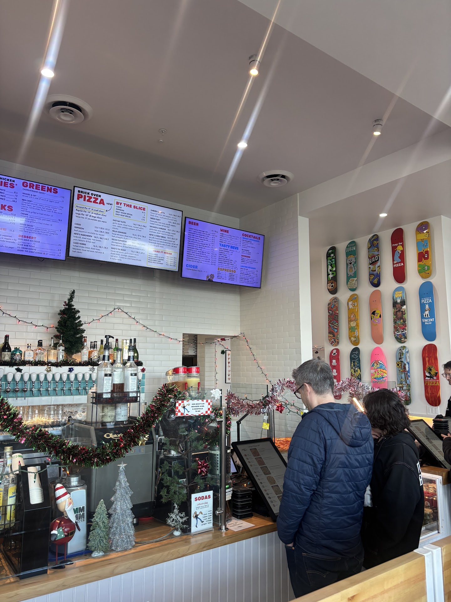 Notes on the food: slice of pizza, ordered the salami and bell pepper. Really nice! Crisp & sturdy interior with airy crust (yet still crisp!), nice sauce:cheese ratio, clearly high-quality ingredients being used. The ranch slaps, too (must be QUITE the low COGS (cost of goods sold) item, though - $1.50 for less than 2oz!) beer (got the calidad), good selection but, honestly - pretty obvious that they need to clean the draught / taps. The prominent overly-malty flavor is a textbook example of why i almost always order bottled or canned beers (sorry guys! Have to be honest here) … hence the 4 stars...