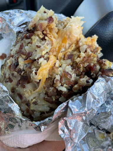 I really enjoy their breakfast burritos which are made with hashbrowns, eggs, rice and choice of meat.