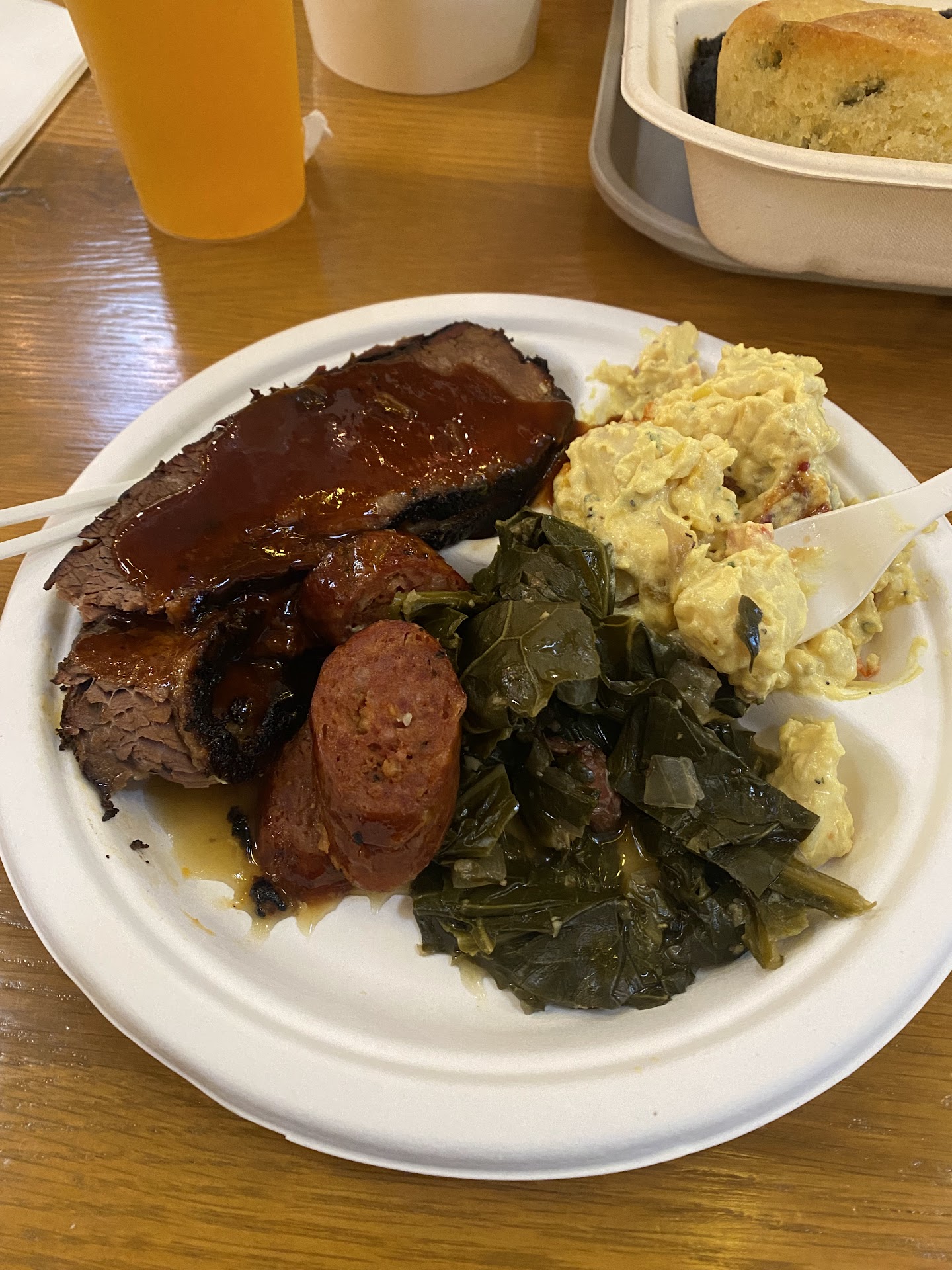 The beef brisket, a true star on the menu, was a mouthwatering delight. Tender, succulent meat paired seamlessly with the mild sauce, creating a harmonious blend of flavors. The cornbread, subtly sweet, provided the ideal accompaniment, enhancing the overall culinary journey. The potato salad, a flavorful addition, was undeniably a big plus, leaving us savoring every moment.