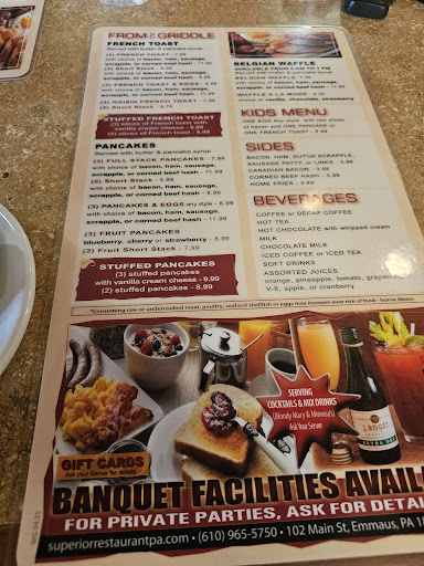 Read moreProbably one of the best diner in the area with a warm and friendly staff, fun vibe, great menu, fair prices and good food. Superior has a traditional diner option on one side with the wonderful booths and counter seating and that great diner feel, and on the other side there is the restaurant option in a warm setting with tables and booths in a relaxed and inviting atmosphere. There is a full bar with seating and also a large area downstairs to reserve for private events, parties or gatherings. Love their late hours too . After 9 pm most restaurants close in the area so it is nice that they are open late. Tried their ham egg and cheese on a croissant, home fries, a side of french toast, turkey Rachel sandwich, turkey triple decker a grilled chicken sandwich , sauteed pierogi's and so much more. Everything is excellent and comes exactly as ordered. The food is hot and fresh and delicious. Large portions with fair prices and you get your monies worth. The staff are extremely kind and friendly with fast service . Great restaurant with wonderful menu items to please everyone and excellent food. Great for breakfast, lunch, dinner or late night snack and to go orders. Well worth a visit. The food is consistently good and the restaurant is clean , neat and organized. A pleasure to visit. Keep up the good...