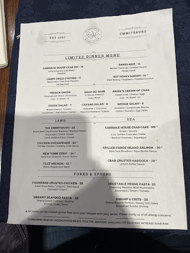 Read moreI recently had the pleasure of dining at The Carriage House in Emmitsburg, MD, and I must say, it was a truly delightful experience. From the warm and inviting ambiance to the attentive and friendly staff, everything about this restaurant exudes a sense of charm and sophistication.