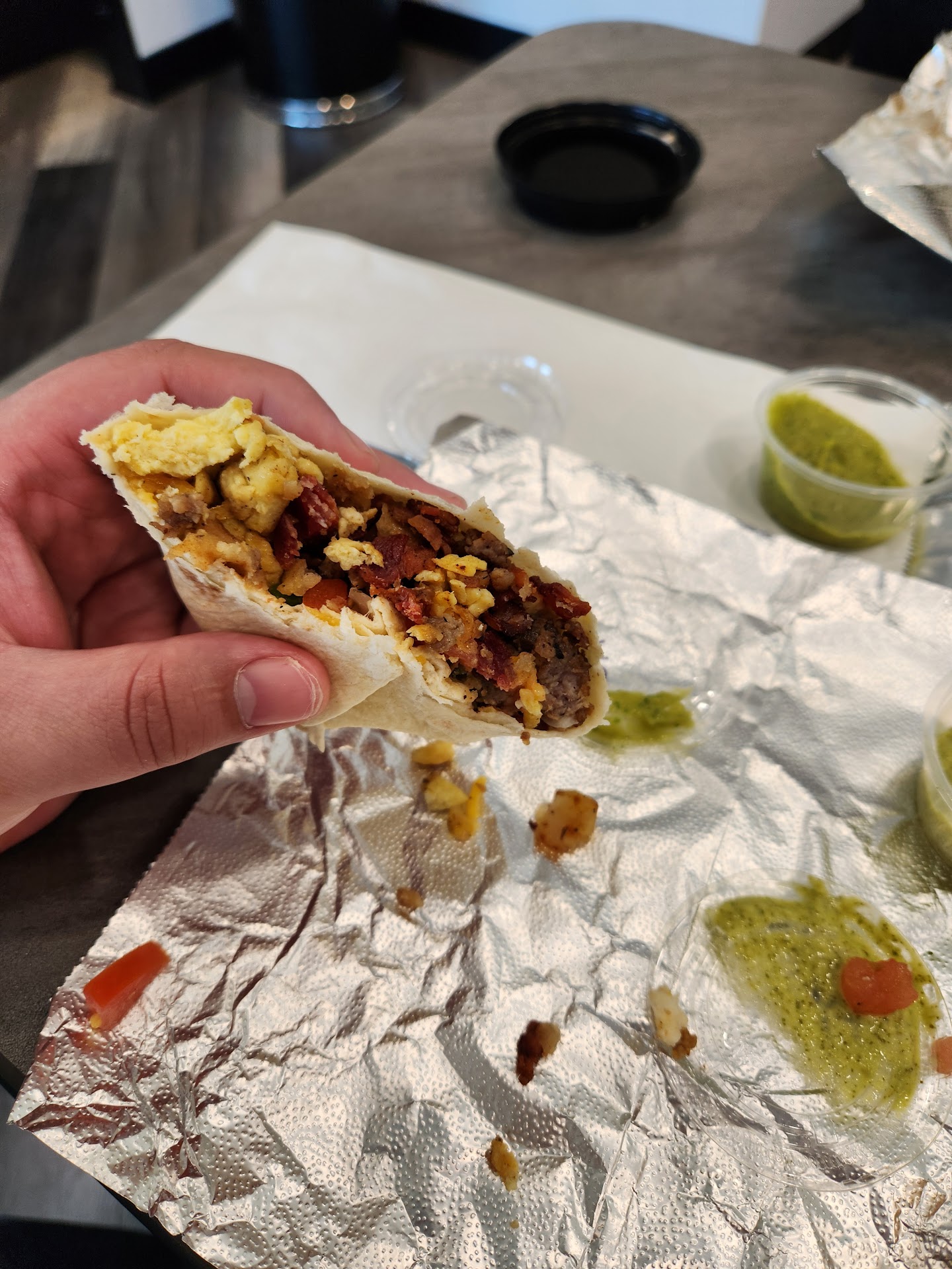 Read moreStopped in and had a mocha and a breakfast burrito. I was very pleased with both. The breakfast burrito was very thick and had plenty of ingredients without being too much. It tasted like something you would get home made with love. The shop itself has great ambiance and is somewhere you can stop and wake up without it being too loud. Lastly the staff and owner have great attitudes seeming to really enjoy what they are doing greeting you with a smile when you come in and wishing you well when you leave. Mid way through the meal the owner came out and offered a new sauce for us to try.