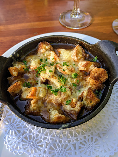 Incredible meal. Beautifully tender beef, fresh greens, and excellent accompaniments. If you go, be sure to try their mushroom rissotto, it was Devine. We came later on the evening, unsure if they could fit us in for dinner, and were welcomed, seated, and not rushed at all. A delightful amuse bouche of bacon, blue cheese, and scallion on toast point came right away from the house, and our salads, beet and green salad, followed not long after. My beef tenderloin was tender, juicy, well seasoned, and the goat cheese fondue was such a clever way to finish it; my husband's duck duo was impeccably cooked, the sauce brought out the complex flavor remarkably well. I've never had sweet potatoes au gratin, but they were creamy, flavorful, and tasted like more! These are rough times for restaurants, but I so hope this place will be around for next time we are in Michigan. The food is excellent, the chef was friendly and joined us at our table, and their location next to the lake makes you feel like you've stumbled upon...