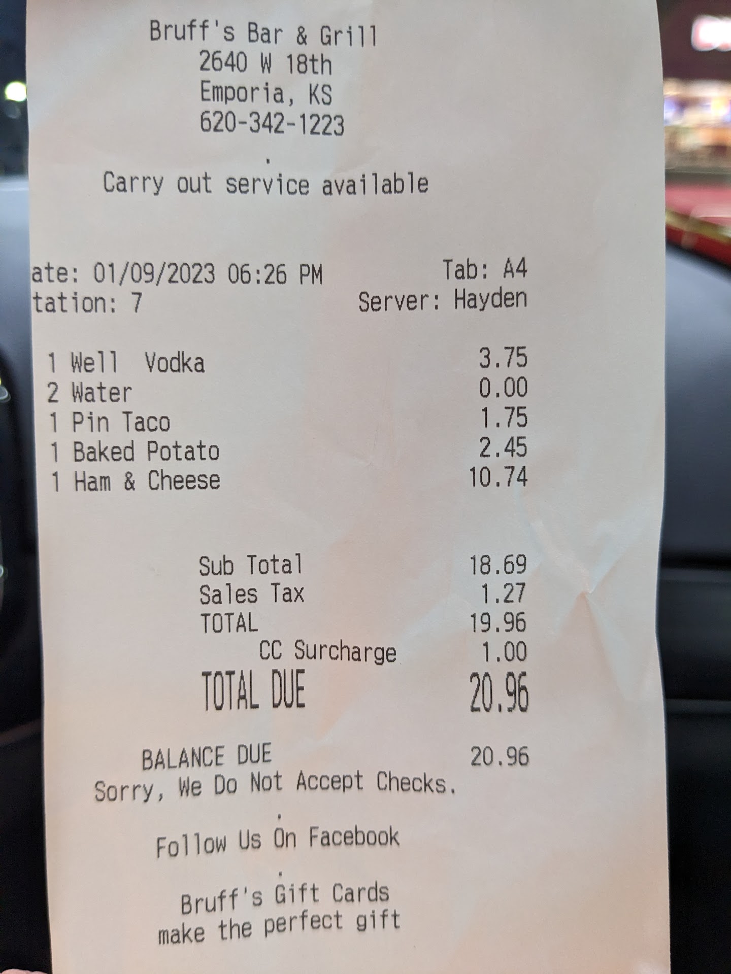 So disappointed in Bruffs. I tried calling 4 times to place an order. Someone picked up and hung it back up each time. I would be more understanding if they were busy. On my 4th call I was in the parking lot. 22 cars on the lot, how many belong to the employees? Walked in 2 standing by the door, 3 at the bar chatting. I asked one at the door if the phones were broke, they said no. Went to place my order but they don't do steak bites anymore and I'm not paying $27 for an 8 oz steak. I ordered husband's food. Individual behind the bar said phones are messed up and I replied that isnt what that person told me. I miss the other owners. I pray he is resting in peace. Im sad that the quality of service has gone down so much. In the beginning with the new owners I gave it tome to get adjusted but it hasn't gotten any better. We stopped being regulars because of this. It makes me so sad because my husband and I had always enjoyed coming there but the past year it has really ranked. I understand the price increases because inflation is a thing and they need to make their money. But you don't sacrifice service and that is what has me upset. Sadly I won't be spending anymore...