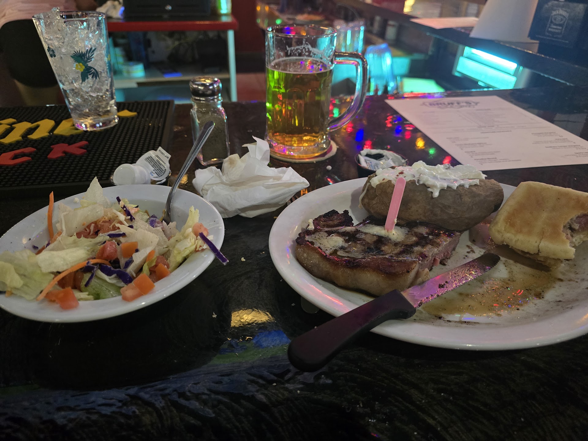 Ā Ā Ā Read moreUsed to frequent this sports bar years ago, I believe it's under new ownership now. The menu is good, very attentive waitresses. Our group chose several different entrees, the fried shrimp looked pretty overdone but tasted okay with cocktail sauce, the steak burger was cooked medium well (many people prefer it, a bit over cooked for my preference), fries were good as were the sweet potato fries. NOW... the silverware. My forks as well as knife was pretty disgusting, I took note of the others silverware at our table and, without exception, all were pretty dirty. Fortunately, we had hand sanitizer and after a little scrubbing, we used them without complaining to our waitress. We figured they would have brought out more just as dirty. The drink glasses appeared to be a little beat up around the edges, didn't want to look too closely considering the silverware. I'm undecided if I'd go back, but I'd definitely look closely at the table service. The place was nearly...