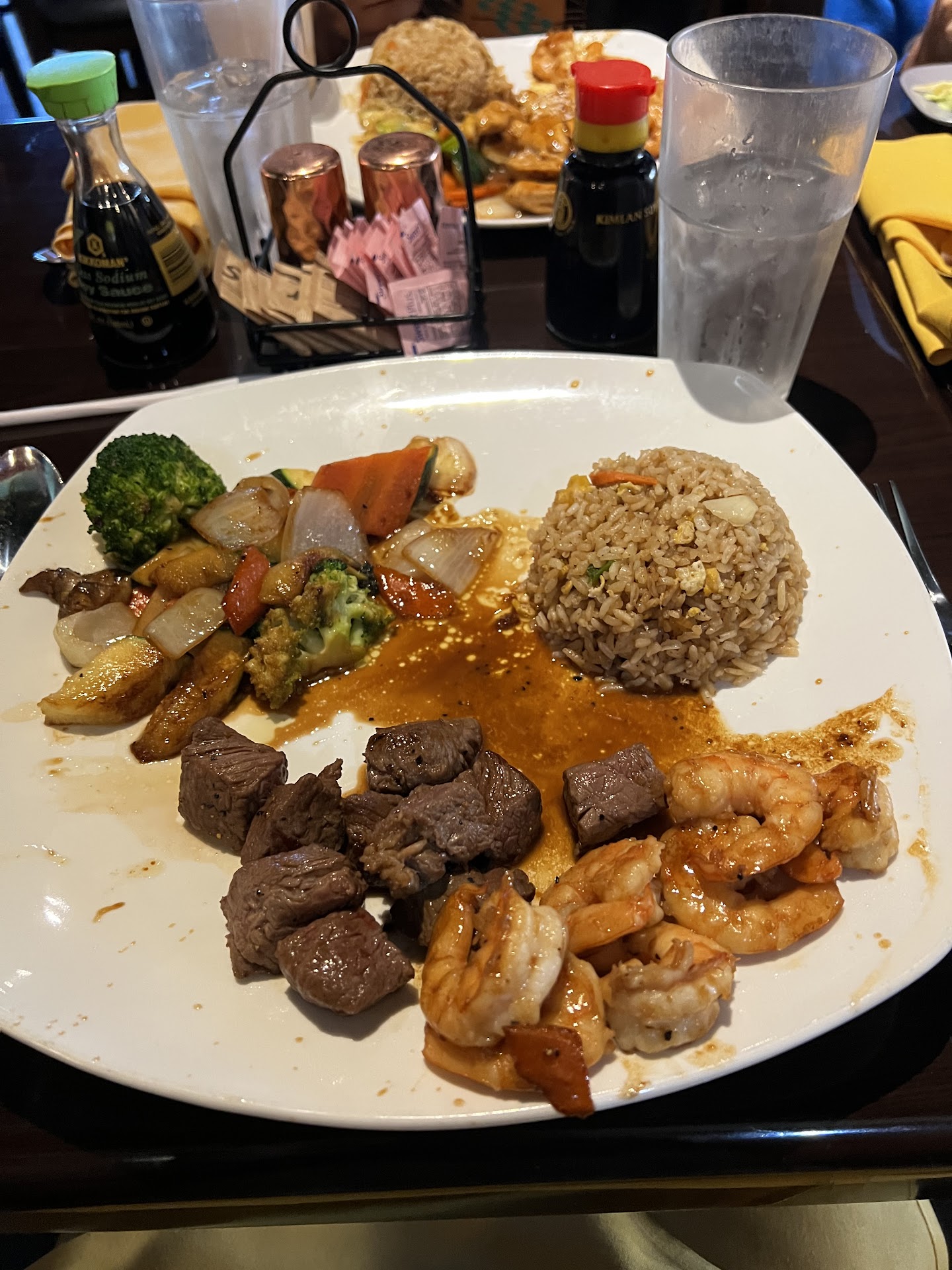 The food was tasty! The sushi rolls (pics attached) had a good presentation and the flavor was solid. The hibachi looked good too and the review from my dad was similar to our sushi - it's good, not great. My mom also had a bowl of curry and it came with 5 levels of hot, so having the choice to pick your level of spice was a great feature. Also, the bowl of curry was HUGE so you get fed well, I can promise you that :)