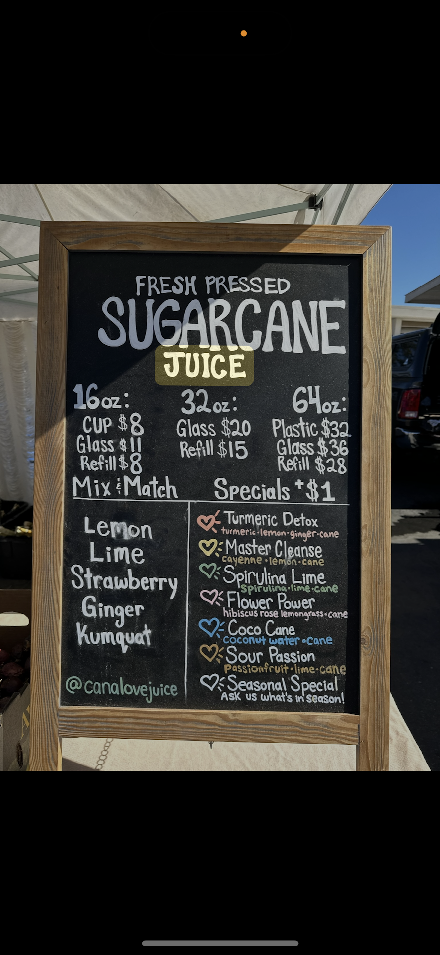 Ā Ā Ā Read moreWe tried CaƱa Love at the farmers market when we were visiting San Diego and it was the best weāve ever had! Perfectly sweet and fresh! They were so kind and educated us on the health benefits, telling us that sugarcane juice is filled with so many vitamins, minerals, and electrolytes. And the best part is that they grow all of their sugarcane organically and locally...