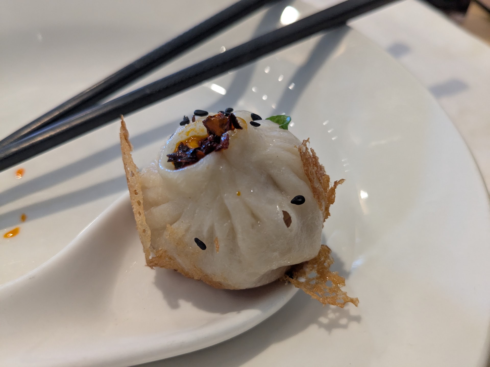 Read moreCame for dinner at around 5:30pm on a Wednesday. It was a bit busy, but the servers were very attentive, ensuring that every guest was well taken care of. Food was great, and the service was even better! My server was extremely helpful in helping me decide what to get, and her recommendations were spot on! I started with the beef potstickers and they were very juicy and packed with flavor. The chicken wontons and cucumber salad are a MUST, and the milk green tea was delicious. The custard bun was a great dessert to end the meal too. Every dish I tried was well worth it! The ambiance was very nice, the restaurant is a bit small but it makes for a good service. I enjoyed watching the chefs make the dumplings through an open window, which added to the experience. The overall vibe was very chic and sophisticated, definitely on par with other high-end restaurants. I would recommend this restaurant to all...