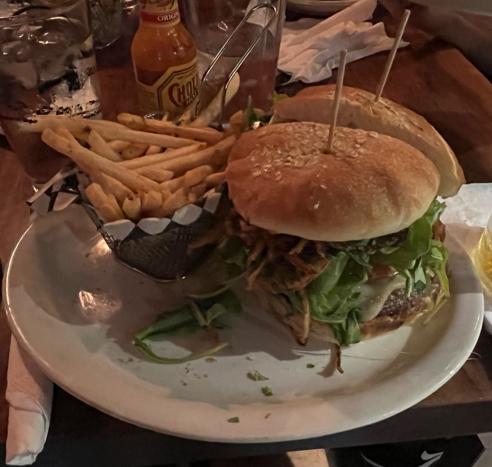 Food is actually pretty good from the fries to the wagyu burger (get the gorgonzola on the side because the gruyere is plenty enough already and you don't want to take away from the beef). I haven't actually had much of the menu, but have had most of their burgers. I stayed away from the cheesesteak because it was tri tip and not ribeye, who wants a beer float anyhow? With good pizza nearby I could never force myself to try a pizza. Costa Rica Fish taco's are good, but I'm not sure what makes them costa rican. It's local white fish, slaw, generic white sauce with mango salsa (that's probably it). It could totally use more bite, it's fresh and crispy/crunchy, but could use some refinement on the profile. The calamari plate is really scallops, shrimp and calamari. I was hoping it was all calamari for which I prefer an aioli and fresh lemon, but the scallops and shrimp kind of dictated the heavier tomato based...