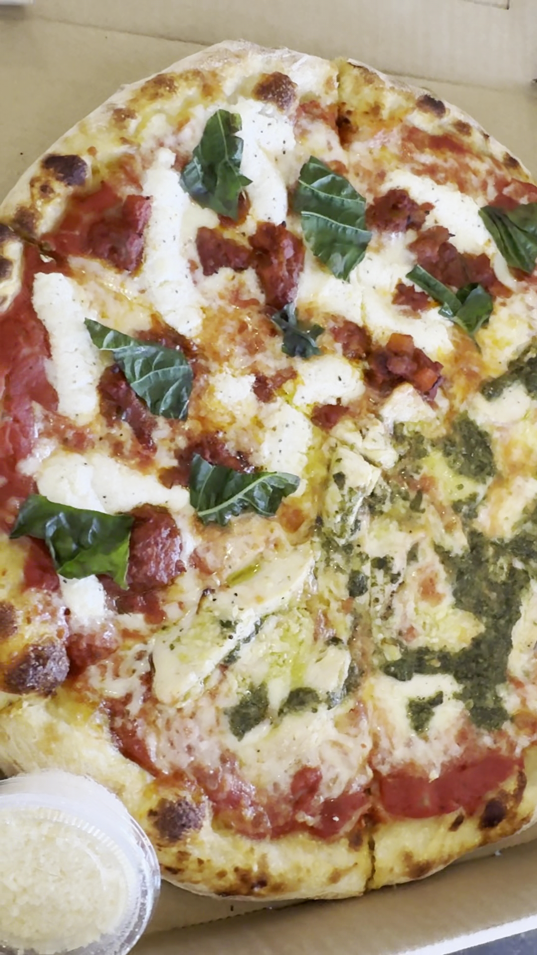 The pizza was great if you don't mind a softer crust. It had a wonderful bite and really good char on the underside. Seasoning was great and the toppings looked fresh and really generous.