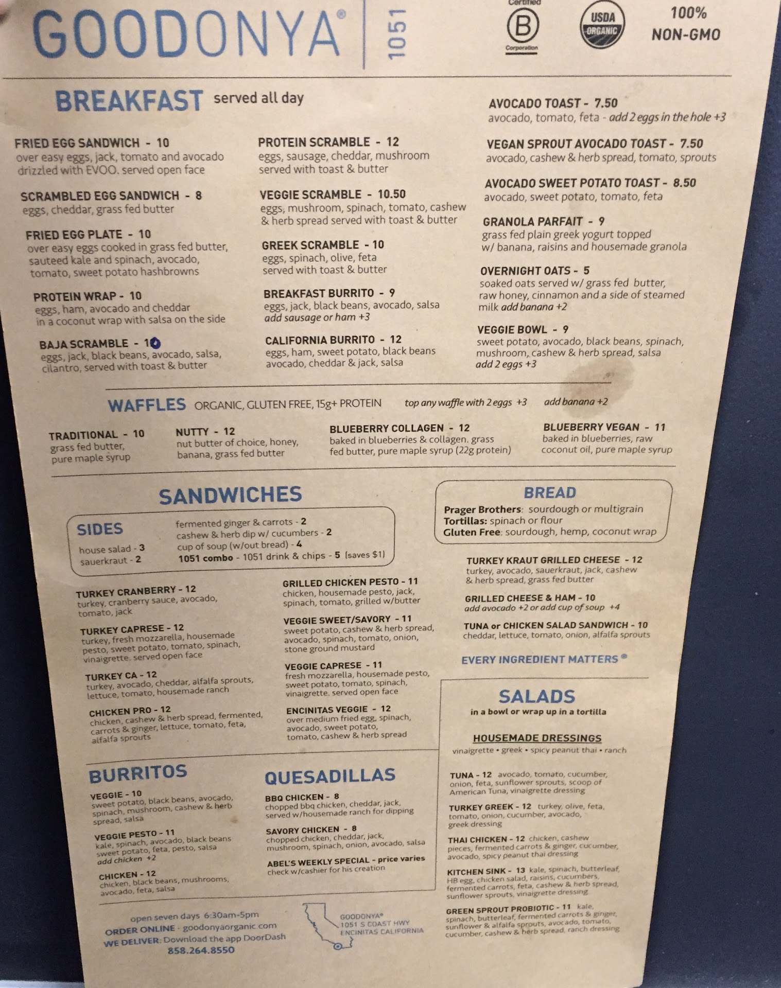 In addition to the high quality of their food they are extremely conscious when it comes to food sensitivities and severe food allergies. Itâs one of the only places we can go where friends and family with severe sensitivities know they will leave with happy, peaceful and balanced tummies. On top of that, theyâve got a killer staff. Thereâs tons of turnover in the SD restaurant industry but GoodOnYaâs employees are long-term, we even see them eating there on their off days!