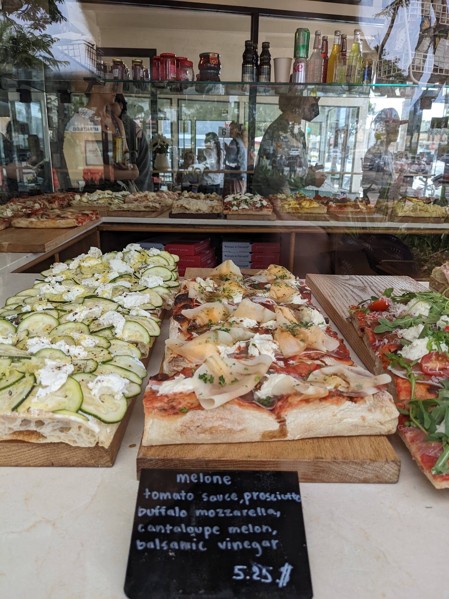 Visited first time Sunday night, and desperately wanted to like this walk-in diner. But were disappointed at the two young staffers at the counter who were not only standoffish and tactless, but were too hasty to take orders and reticent to answer any questions. Upon ordering, we politely asked to lightly cook the slices, not too crusty-browned. Neither they made an eye contact nor responded to our request. Lo and behold, they charred the crust on both spicy Arrabbiata sauce and all 4 Parmigiana squares. Only the 3 Tacchino turkey squares were not blackened, though its crust was rock hard to enjoy the taste or texture. Their ineptitude, the apparent lack of concern and possibly lack of proper training is why they burned the pizzas. I let the guy know who brought the pizza-boards to our table, that even after specifically requested to lite-bake, you burnt it. All he said was, Enjoy! And high tailed it. To already small pizza slices, they cut those down in half-squares and bring them spread out in long wood-planks, which is why when overheated it dries & hardens up the crust even more. They weren’t willing to communicate otherwise we would have told them not to cut it in snack-sized squares. Paid total: $56 for 8-slices, yet still hungry after force scraped to eat only the salvaged toppings with a fork. After pizza fiasco we also bought their Gelato. The server there was cool and upbeat. He apologized for a few empty containers; he said some flavors sold out early. But what was there in Tiramisu gelato? It didn’t taste anything like tiramisu; tasted like unpalatable cream cheese, dusted with some dry bland powder. The unpleasant aftertaste was worse. It’s been over 24 hrs and I’m still queasy in the chest. Terrible overall for a diner in an immersive community of Encinitas popular for award wining cuisine and healthy...