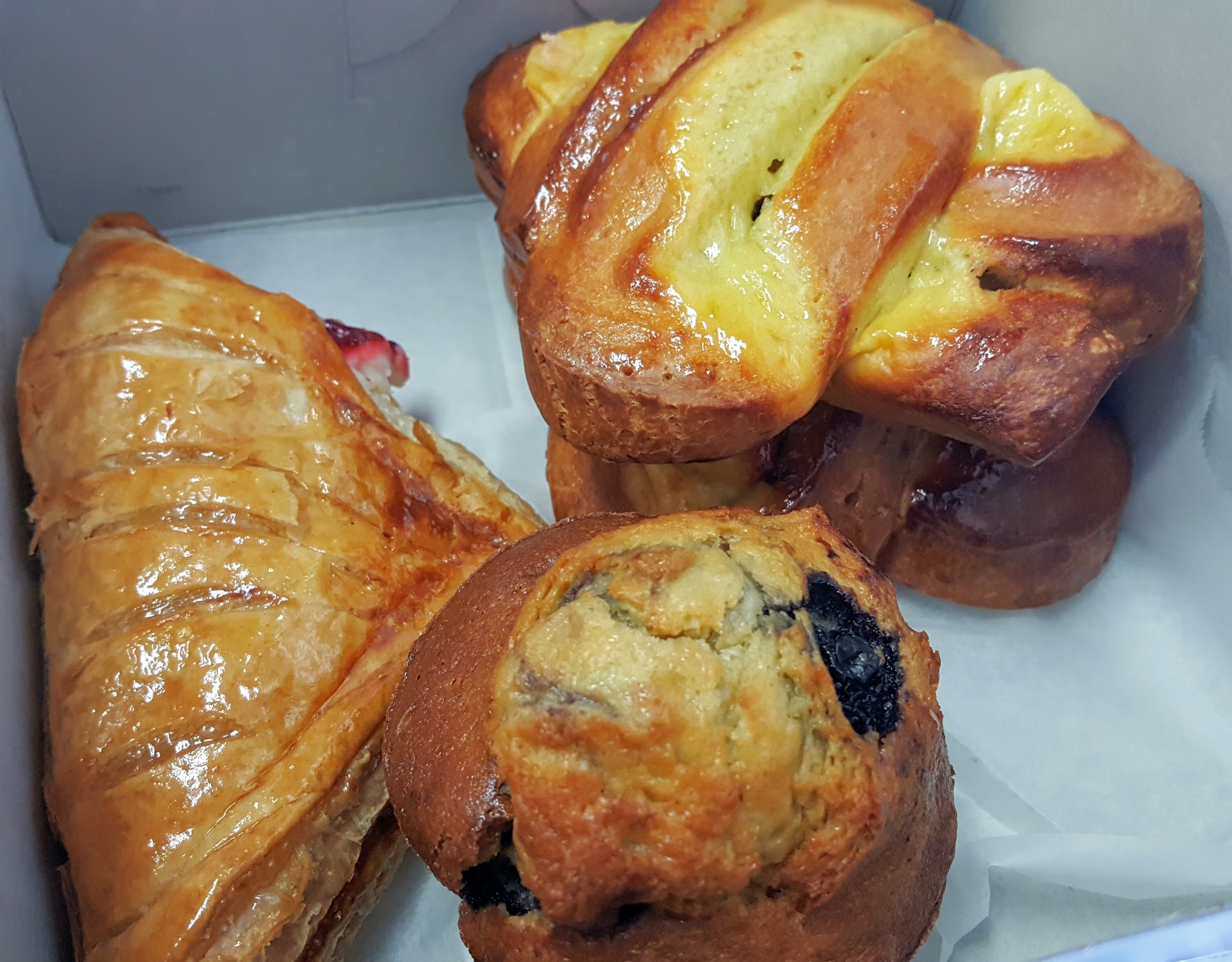 The pastries are light, fluffy, and soft, especially the muffins. Other delicious pastries that I have personally tried include: custard brioche buns, strawberry cream cheese turnovers, coconut macaroons, blueberry and rasberry muffins, blueberry scones, almond croissants, and chocolate crossaints. Each are delightful and packed with sweet flavor.