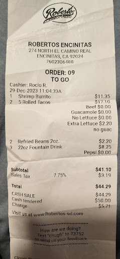 Read moreReally bad service! The cashier couldn't even take our order correctly even though we explained it more than a few times. After all this, they still got it wrong. We asked for 5 roll tacos only beans and cheese and it was really difficult for them to understand our order. Not to mention that they charged us extra for beans, which is not a problem, we understand they have to charge but when we got our order the roll tacos only had beans on half of each roll taco. We forgot to take a picture but it was just frustrating how they could get such an easy order wrong. Strongly don't recommend...