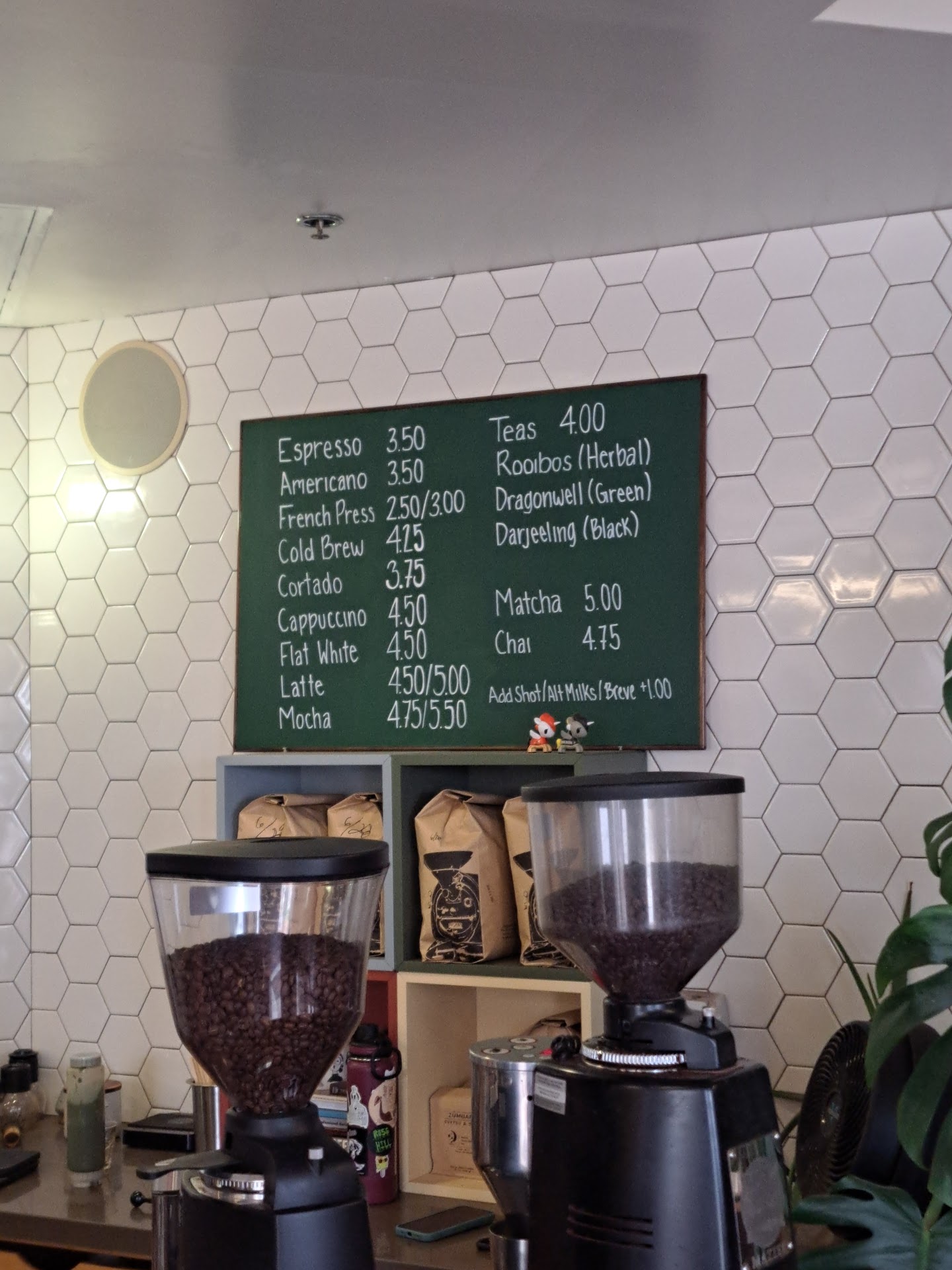 Read moreFirst time coming in and I was pleasantly surprised. First of all, it's quant and simple with a small menu. Calming yet vibrant atmosphere, mainly due to the employees who were professional and welcoming, with lots of smiles. I ordered a vanilla latte and was surprised to learn they only flavor with dark chocolate and simple syrup. If that's a hang up then know that... but it's not for me so I just got it over ice and I'm glad I did. It's smooth and creamy and be sure to add an extra shot! Zoom! My only critique is that your beautiful plants are getting very dusty and would probably enjoy a light wipe down...
