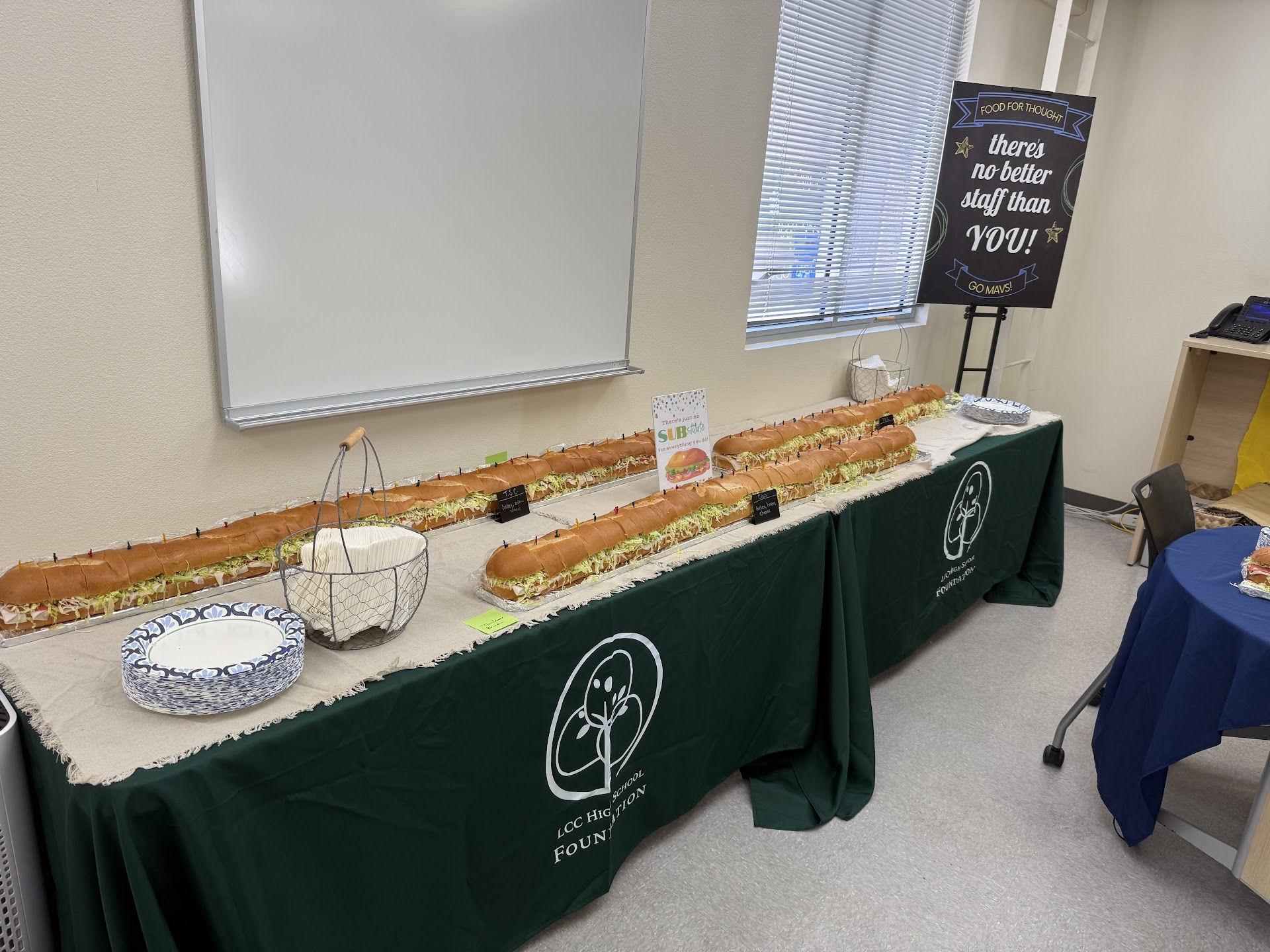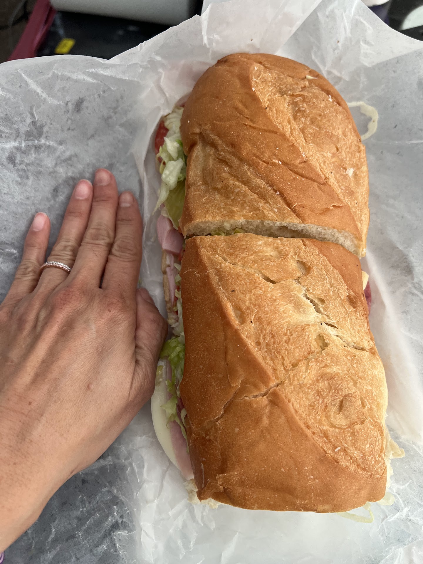 I ordered catering for 150 staff at a local high school. Their owner, Tim, was absolutely amazing to work with, from start to finish. He was helpful in suggesting quantities and recommending their top-selling sandwiches. I wound up ordering seven of their 6-foot long subs, each with a different meat/cheese combo. If you’ve never ordered their 6-footers before, all I can say is DO IT! Talk about a WOW factor. Each of the 6-footers was securely placed on a wooden plank which had been wrapped in tinfoil. Each sub was cut into 30, secured with toothpicks, and wrapped in Saran. I was able to transport them all easily. On the side Tim included mayo, mustard, and all the toppings so people could build their own sub. I heard multiple rave reviews from the staff, with many exclaiming, “it’s the best sub I’ve ever had...