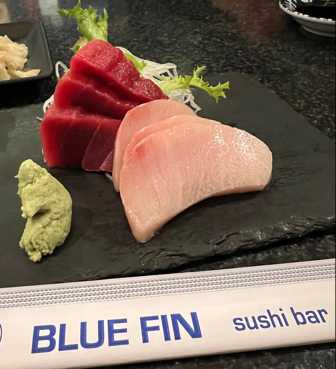 Read moreWe were in Encinitas for a beach day and wanted to celebrate my husband’s birthday with some sushi or sashimi. We found Blue Fin via google search and decided to stop by. The atmosphere is warm, calm, and very inviting with some great Jazz and Funk music playing. Our order was comprised entirely of sashimi. We got 8 different orders of the 5 pieces of sashimi. Every dish was delicious! The fish was so fresh with incredible flavor. Hard to choose a favorite of what we had, but I really enjoyed the Maguro Tataki and salmon carpaccio. The service was also excellent. We will definitely be coming back here when...