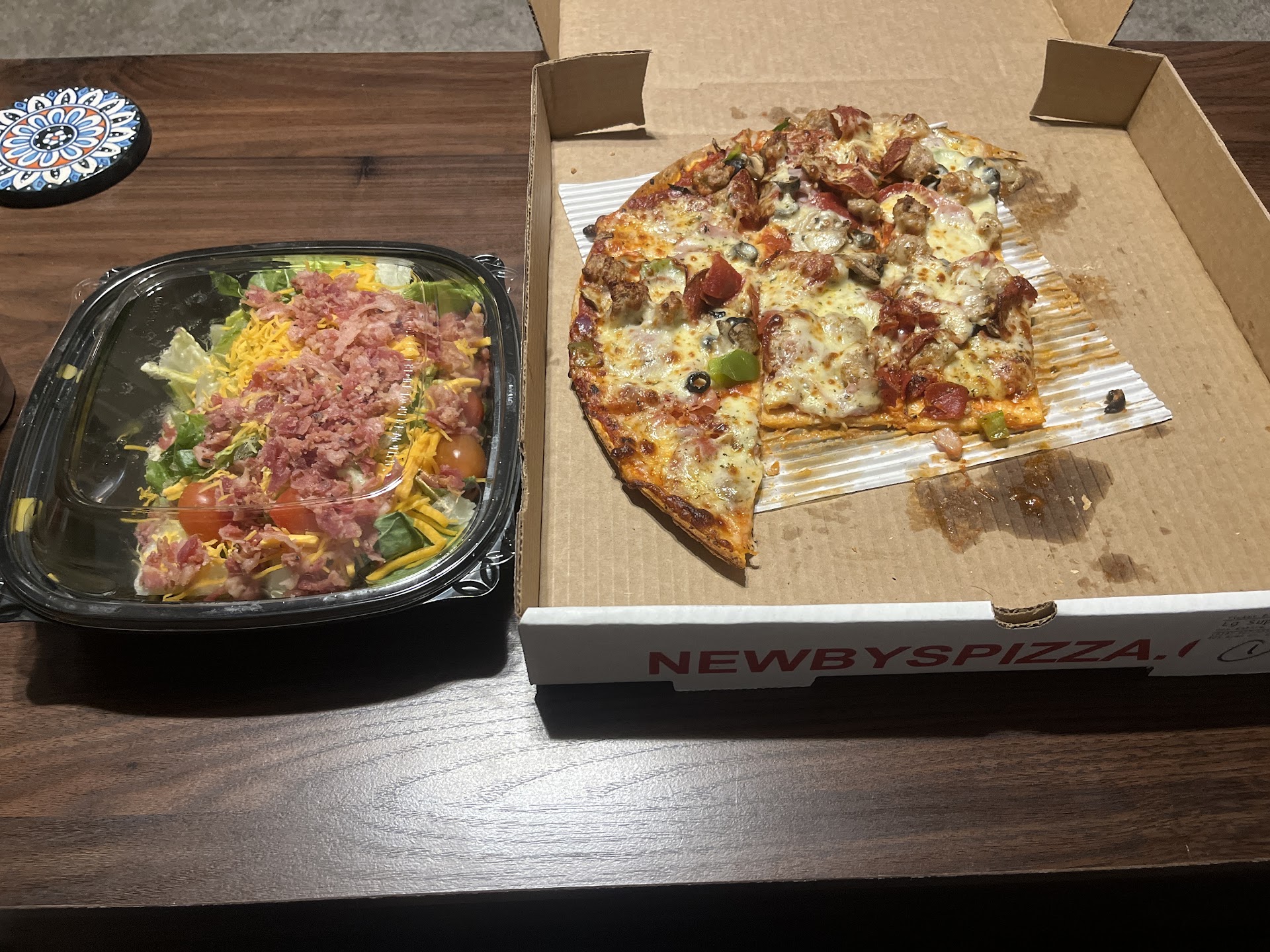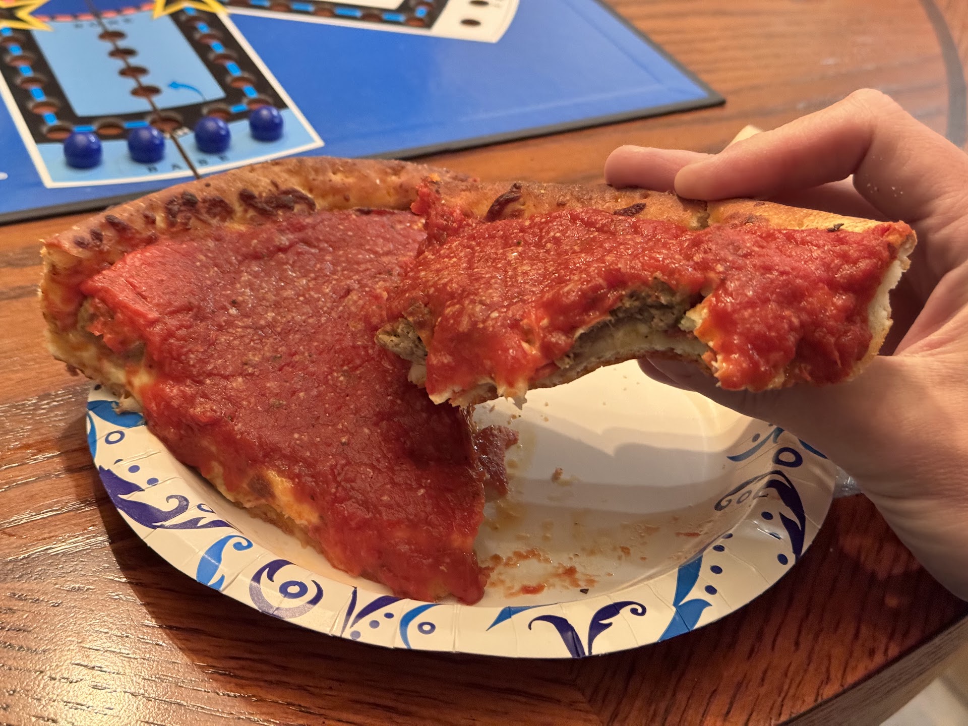 I had a bad experience here that easily could have been avoided. My buddies and I came in around 6:00 on a Saturday wanting to dine in. They have plenty of tables available for dining in but no wait staff, so we ordered at the counter. We got a Chicago-style deep dish, cheese sticks, and boneless wings. Then we got our drinks and sat at the table. I knew Chicago-style usually takes awhile, so we were waiting patiently. There was one other group dining in and they arrived after us and hadn't received their food yet either, so we kept waiting. After 50 minutes, I went to the counter to tell them that we'd take the wings and cheese sticks first if they were ready to go. Turns out, everything had been ready awhile and it was just sitting on the back shelf for who knows how long. Yes, we were sitting there for 50 minutes and the entire staff who could see us through the ordering window never once thought to bring us our food. Totally unacceptable.