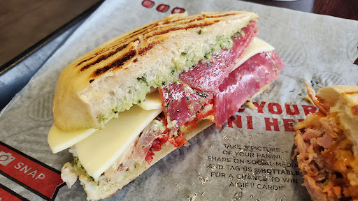 Read moreI can't recommend this place enough. The food is super good, at least my usual, never a miss. I get the cheeseburger or the buffalo chicken panini. They always load it up really nicely, add whatever you want, and the result once it goes through the press is mind blowing. Just absolutely delicious, and so simple. The ingredients always look fresh and "healthy". The staff is always super friendly and non-judgmental even if I order both of my usuals that day, and I usually happen to go during off times so I get lucky and avoid the huge line that can build up. But the line is a thing for good reason, cause their food is banging. Only issue is with the price, I wish it were cheaper but then again it's just cause I'm poor and I wish everything was cheaper. I think it's cause of the quality seeming ingredients. They have deals though sometimes, I think there's an app. And they at least used to have one of those loyalty punch cards but I think they phased that out cause they haven't given me one the last few times I've been there. 6 out of 5 stars if I could though. I recommended it to a friend and she went to another location and really liked it so across the board they're awesome. Closed on Sundays cause of Jesus and all. Like Chick-Fil-A. But without the bigotry against people...