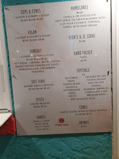 The taste was great! The service was very rude and acted put out to serve a large party (20). The 2 young gals were actually talking under their breath in front of us. Price was a bit steep for portion size. Everything was add on to the $4.25 for small single scoop, so cake cone, sugar cones, waffle cone all extra. I expect waffle to be extra but not cake or waffle! To top it off, outside pricing board was different than indoor pricing, so I inquired about my total being wrong, over charged, I was told it was too expensive to fix the sign outside!!!🤯😂 and of course I was charged the greater price. A little duct tape would go a long way along with a smile on your face! I don't think we'll return. Too much other competition in the area for me to be treated rudely.