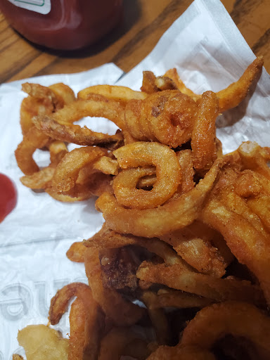 The manager on duty tonight was extremely unprofessional and blamed his employees for the long wait for my onion rings. I ended up basically forced to take curly fries, which I really didn't want. Nothing else was available and after 15 minutes in line I wasn't waiting any longer. I did eventually get the onion rings but they weren't fully cooked so were inedible. I had also wanted to order cookies but they weren't ready either.