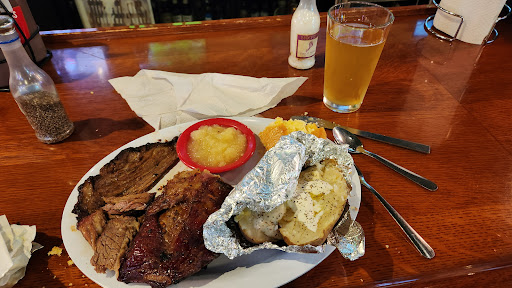Read moreAight, been a while since I had BBQ. Still, im using carolin brewing BBQ as my reference to this. Tldr: honestly for the price vs. The flavor its not worth it. If you wanna support fire houses go eat at fire house subs instead. Pros: service was fast and they never complained about me asking for random extra things like cups to mix sauces. It technically is supporting fire houses. The fire house chili with sausage was pretty darn good, upcharge from 3.25ish to 4.75 for it, but it was solid. Came in about a small coffee mug amount. Honestly it was expensive but it was far and above the most worth for the cost item. The sweet potato casserole was solid. You gotta be wanting the Thanksgiving dinner taste tho cuz its loaded on nutmeg and such, missing the brown sugar glaze and nuts, but the flavor and mush of it was not bad. Same upcharge as fries. Came in about a 1 scoop of ice cream size amount. Their chips that dont come with the meal unless you wanna go charge 5 dollars per entree, were well seasoned and tasty. Cons: Fries are an upcharge. Don't do it. I kid you not, every single fry had zero salt. No salt at the bottom of the dish either. It was about a medium mcds fry amount in well fried just thick enough to dip and hold the sauce dipped in. Fiance ordered the pulled rib meat sandwhich. I kid you not, it was only seasoned with pepper and salt. No sauce. It was dry as hell and being basically unseasoned on a plain Kaiser bun it was basically inedible without using a sauce from their table. My sandwhich, the Texan, was basically the same problem. Sausage and the brisket was literally unseasoned besides salt and pepper. No other flavor, tasted like I was eating a boiled piece of meat. Sausage was better but still needed dipped in sauce to really eat the whole thing. That cost 19 dollars before tax.. Overall. Seriously not worth it. Atmosphere was dark, pictures of food items while accurate to what was ordered, was also dark background. Trivia was good tho,...