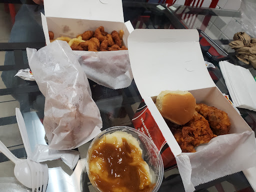 Went to Kennedy Fried Chicken today, there were two men working. The first man, who worked the front counter in addition to preparing the chicken boxes, had no mask on. It was not on his wrist, it was not resting on his chin- it was absolutely nowhere in sight. This was as he was boxing the chicken to give to customers. The second worker wore a bandana as a mask. Anyone over the age of ten with access to the internet knows that a bandana does absolutely nothing in preventing the spread of the disease. Additionally, he wore no gloves when handling/ preparing the food. Kennedy Fried Chicken, your food is good, but please, EDUCATE your workers....