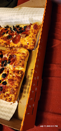 Read moreI have never had such a horrible experience at little caesars as I did here. And unfortunately, it had to be on the day of my daughters birthday party. I ordered several pizzas for the kids, and did not even bother to check them because I have really never had issues with getting pizza at any little caesars. There are times it has been less than perfect, but what we got was a sloppy disgusting mess that didn't even taste good. As you can see in the photos, it looked like maybe the pizza was rushed when stretching the dough. Very misshapen to the point there was practically no crust to hold. This would not have been such a big deal, but in addition to that the pizza was way under cooked. Soggy and floppy and a mess to try and eat. One pizza was cut so horribly that it was either take a gigantic piece or have a small, deformed one. Not ideal at a party with many people eating. Another pizza was not cut at all and I was having to use a plastic knife to try and cut it as that's all we had. I definitely would never go back here and I feel like I should be offered a refund for this awful mess...