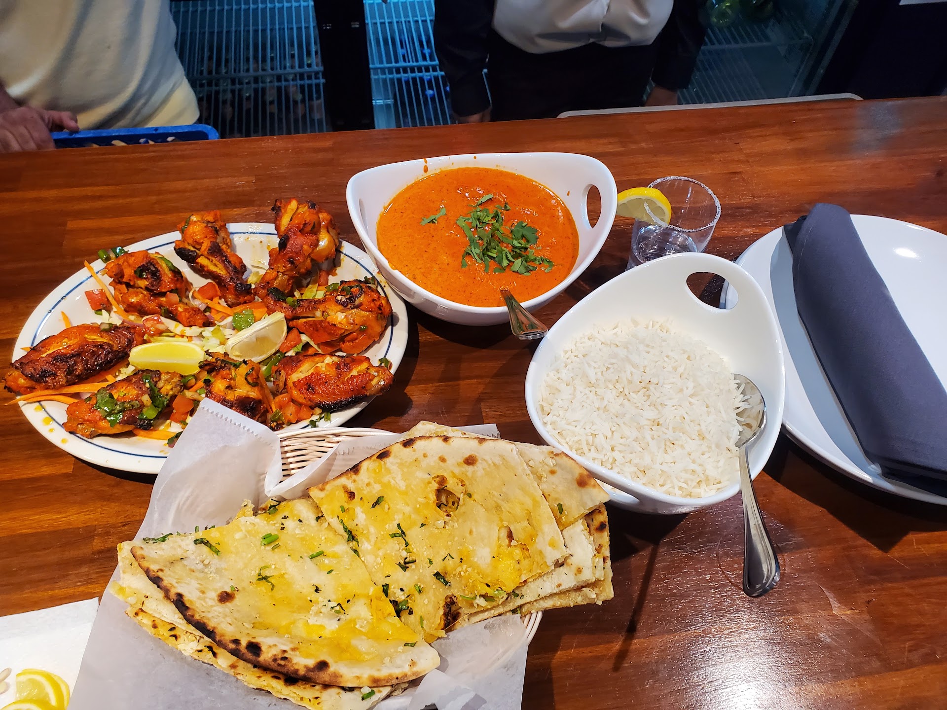 I had to stop in to see if all the 5-star reviews were warranted. 100%. I stopped in and placed an order to go: Tandoori chicken, butter chicken, and garlic naan. They offered me a seat at the bar and a glass of water with an orange slice while I waited. Server said it would be about 20 minutes for the food, which I think is very reasonable. It was ready in about 17-18 minutes. The Tandoori chicken was excellent. 4 drumsticks & 4 thighs. At least twice, more likely 3x the amount of meat you’d get with an order of buffalo wings for that price. Butter chicken was also great. They apparently had some extra sauce so added an additional small container which was perfect for dipping the naan in. Word of warning: I ordered everything medium spice. I like spicy food and it was quite spicy for me. Delicious. I just need a lot of water & may have had a few (happy) tears. I’d probably do medium again but if you’re not good with spice, definitely go mild. Will...