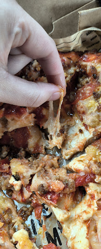 !!!BE CAREFUL GOING THERE TODAY!!! Very disappointed, my partner and I went in to get pizza today. We eat here frequently and had not previously had any issues. Today we noticed new faces that were not normally there. We ordered our food like normal. We grabbed our pizza and left I was two slices in but was not satisfied it did not taste as good as it normally did. When I went for another slice I pulled the cheese and toppings back because it was an odd texture in my pizza. That's when I realized that although the bottoms was seeming to be done. The dough on the top where the toppings sit was in fact still raw and soft and stretchy not cooked. I could not and would not eat anymore because raw pizza the light is not safe to consume and can cause you to become sick. I luckily warned my partner about this he checked his pizza and his was the same way as mine the dough was not cooked all the way through. He opted to go inside and request a remake on his pizza I was very off the pizza and lost my appetite. They only gave us a partial refund for my pizza and seemed annoyed at his request. Very rude staff and the potential of making customers sick by serving this today very sad because the normal staff that works never served us pizza this way. Not sure if they don't have the oven set to the right temperature or time today because we both also realized how much quicker they seemed to be done l vs when we normally get them. I have included pictures that is not cheese that is being pulled from the pizza it is still raw dough. Update I have been sick to my stomach all last night and into this morning please take care when preparing people's food and make sure it's able to be cooked fully before serving so people do not get sick...
