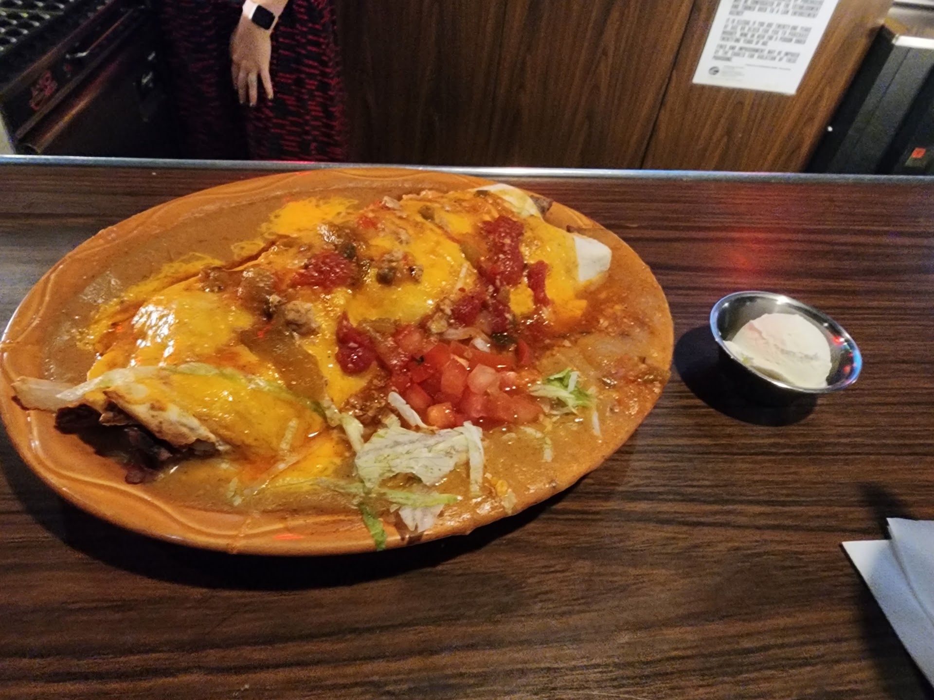 Read moreMy aunt and uncle love this place, so they took me there a few months ago. I had the California Burrito, which made no impression on me whatsoever. I had to scan the menu to try and figure out what I had. Not a good sign. My mom wanted to go back for Mother's Day, and I reluctantly agreed. I got a queso burrito with steak, and it was terrible. The only flavor it had was salt and pepper. Mom had their famous Quesserito, which was bland and suffered from low quality ground beef. If this is what they're known for, the owner has done a remarkable job keeping a restaurant thriving off of a substandard plate, so there's some business sense there that is admirable. The waiter said they'd been serving them since 1970. That's it! I realized that the recipes are 30 years old, and they taste that way...out of date, bland, and in severe need of reworking. The average patron both times I was there were in their late 60s to early 70s, probably having established loyalty around the time the Quesserito was imagined. The decor must have been pretty cutting edge back in 1967 or so, but now feels extremely dated, and not even in a retro-chic kind of way. It felt dark, stuffy, uninviting, and claustrophobic, with only one tiny window that I found myself wanting to sit closer to. If the food is good, I can forgive just about anything else, since dining is what brings me to a restaurant. The problem is, its just not good. Rework the menu, liven the place up, and turn the lights up a bit so I'm not blasted in the face when I walk, no run to my car after suffered through a bland experience in a dark little hole...